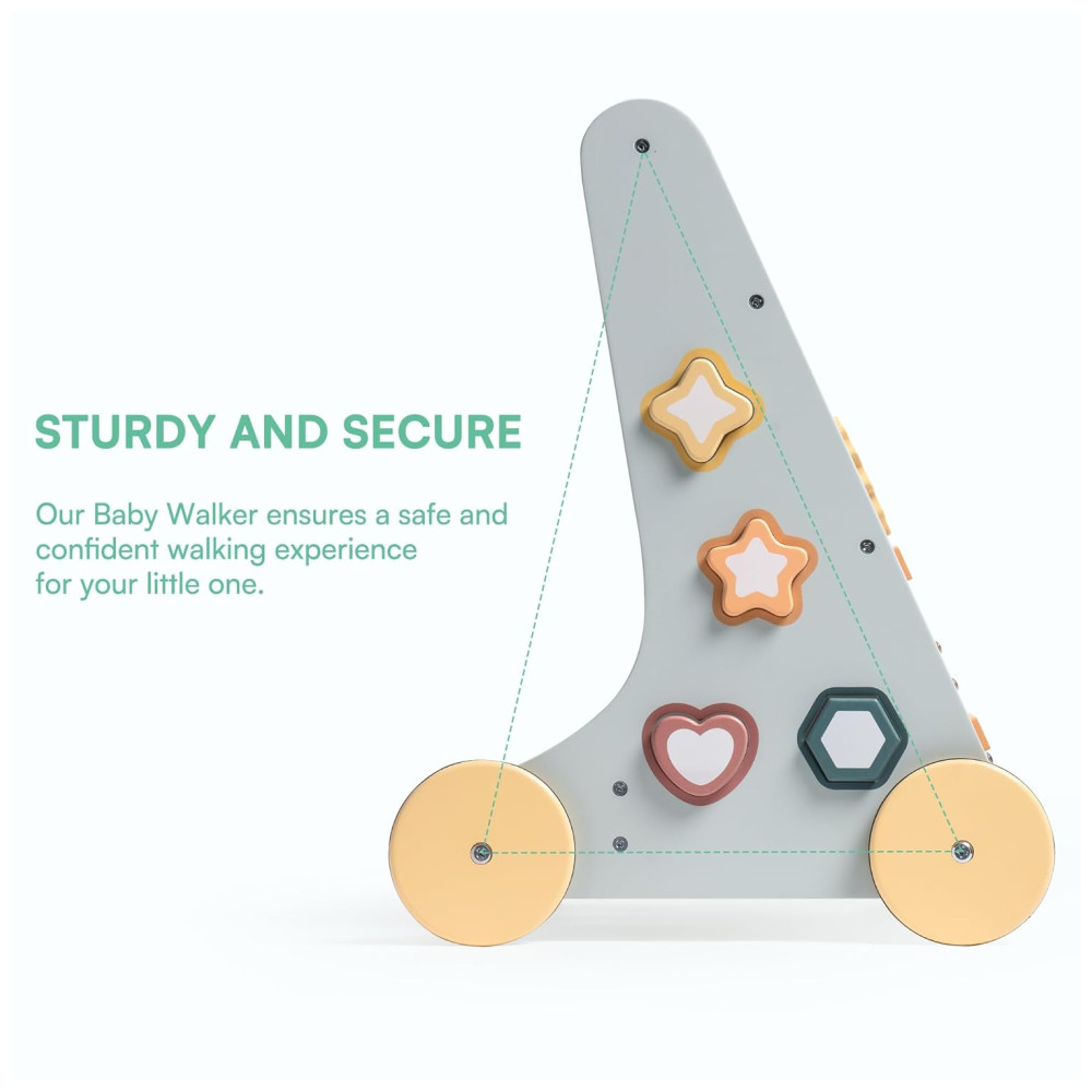 O Carrinho de Madeira ROBUD é feito de madeira premium com tinta atóxica, garantindo durabilidade e segurança. Suas rodas de borracha antiderrapantes protegem o chão, proporcionando uma experiência de caminhada suave e estável. Além disso, ajudam os pequenos a desacelerar gradualmente, reduzindo o risco de quedas. Mais do que um simples carrinho, este brinquedo possui espelho, ábaco, engrenagens, xilofone, árvore da sabedoria, quebra-cabeças de formas, relógio e mais. Esses elementos interativos estimulam a curiosidade, desenvolvem habilidades motoras e incentivam a aprendizagem precoce, tornando cada passo uma aventura divertida! Com rodas grandes e estáveis e um design bem equilibrado, este carrinho ajuda a evitar tombamentos, fornecendo um suporte robusto. Ele fortalece os músculos das pernas, melhora o equilíbrio e incentiva a caminhada independente, transformando pequenos passos em grandes conquistas! Preocupamo-nos com a segurança do seu bebê! Cada borda é suave e arredondada, proporcionando uma superfície livre de rebarbas e gentil às mãos pequenas. Detalhes cuidadosamente elaborados tornam o carrinho seguro para horas de diversão sem preocupações. Com sua bela fabricação, recursos envolventes e cores unissex, este carrinho é um presente ideal para meninos e meninas, perfeito para aniversários, chás de bebê ou ocasiões especiais. Vem em uma caixa de cor atraente, tornando-o pronto para presentear e ideal para qualquer celebração. Montagem fácil passo a passo! Preste atenção na instalação da arruela da roda para garantir movimento suave. Se as rodas parecerem presas, verifique se as arruelas estão no lugar correto.