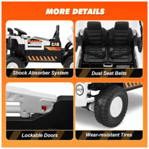 Carrinho Elétrico Infantil 2 Lugares 4×4 4 Motores 70W 24V10AH Bluetooth Carga Caçamba Basculante Controle Remoto JOYLDIAS Branco