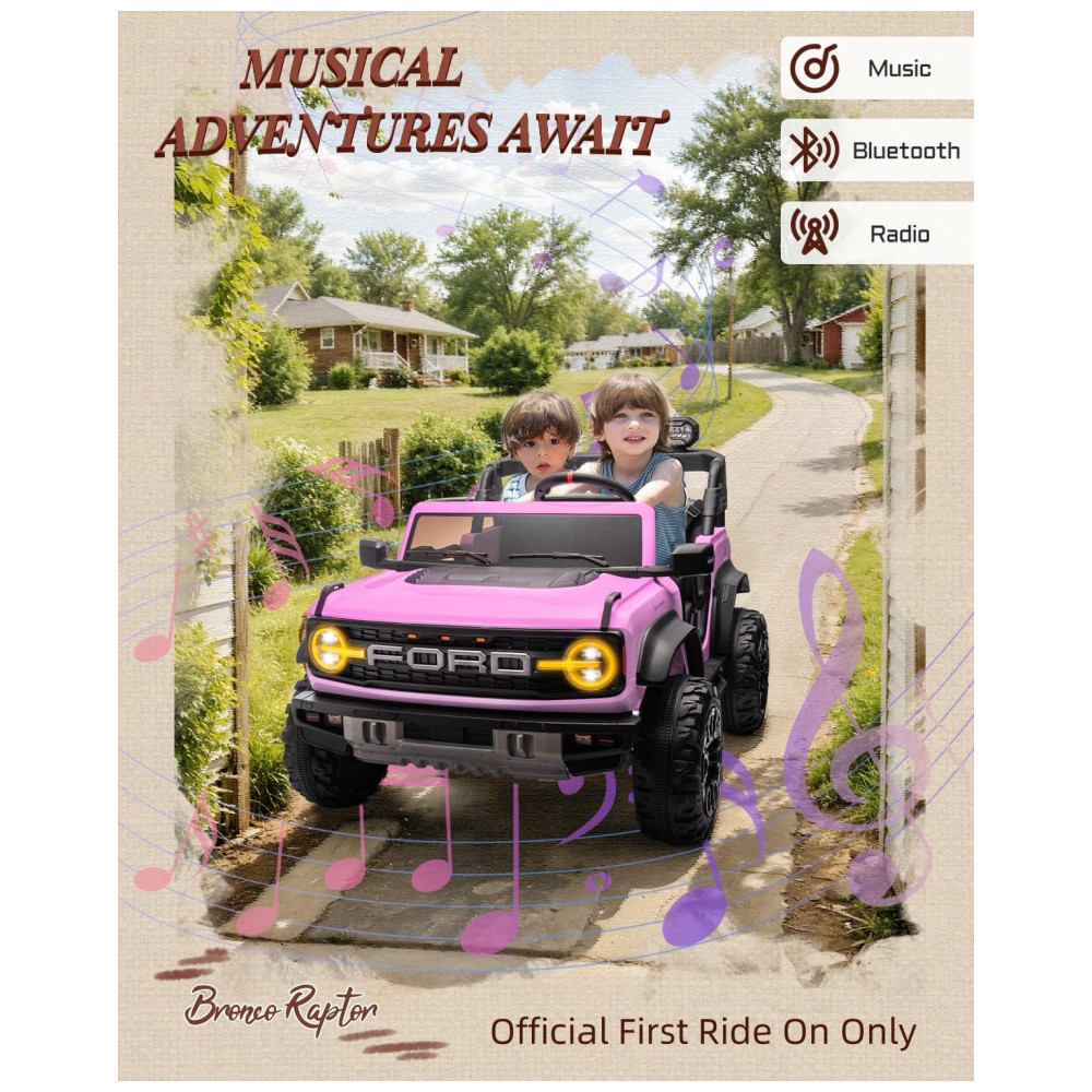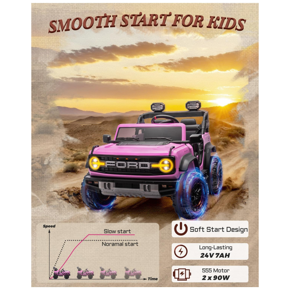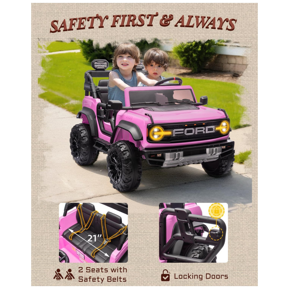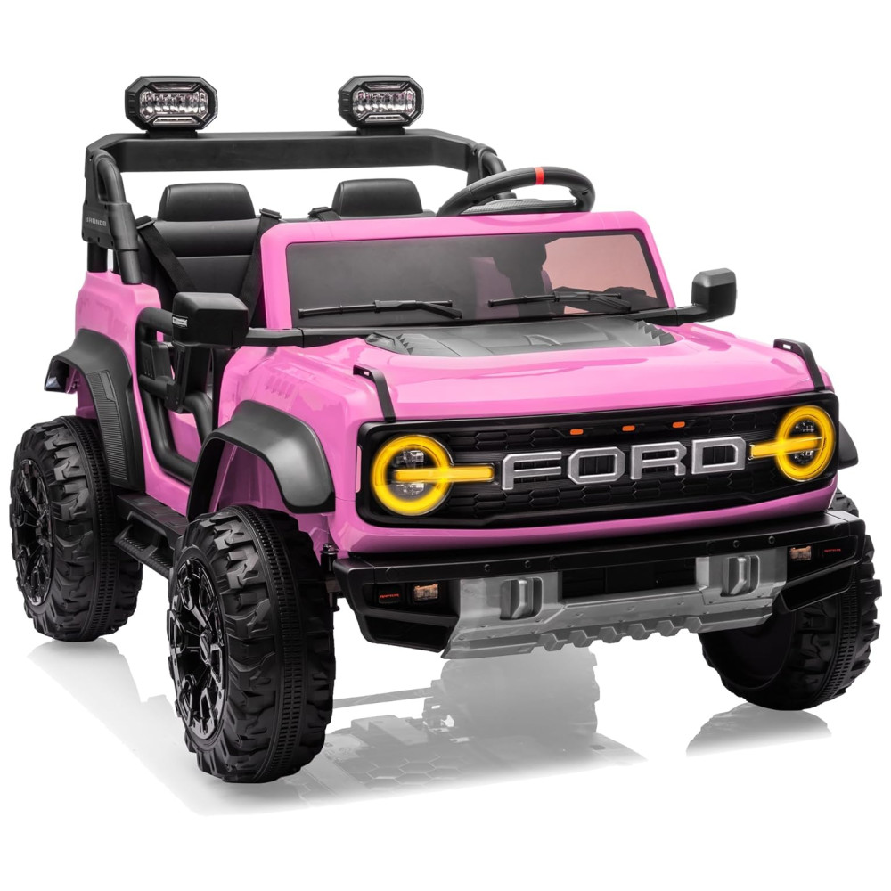 Carrinho Elétrico Infantil Ford Bronco Raptor 24V 2 Lugares Controle Remoto Suspensão 4×4 Luzes Led Bluetooth RosaFirst Ride On