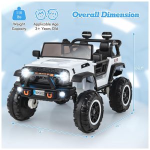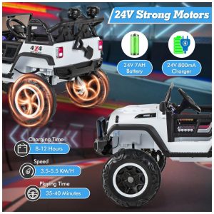 Carrinho Elétrico Infantil INFANS 2 Lugares 4×4 4 Motores 550W Jeep SUV MP3 USB Controle Remoto 24V Branco