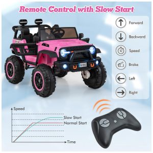 Carrinho Elétrico Infantil INFANS 2 Lugares 4×4 4 Motores 550W Jeep SUV MP3 USB Controle Remoto 24V Rosa