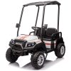 Possui painel com botão de partida, volante multifuncional, pedal acelerador, controle parental remoto, música, MP3, Bluetooth, sons reais de motor e buzina. Estrutura reforçada em polipropileno (PP) e ferro, design esportivo, acabamento rosa metálico. Autonomia média de até 1 hora contínua, tempo de recarga 8h, recomendação para crianças entre 3 e 8 anos.