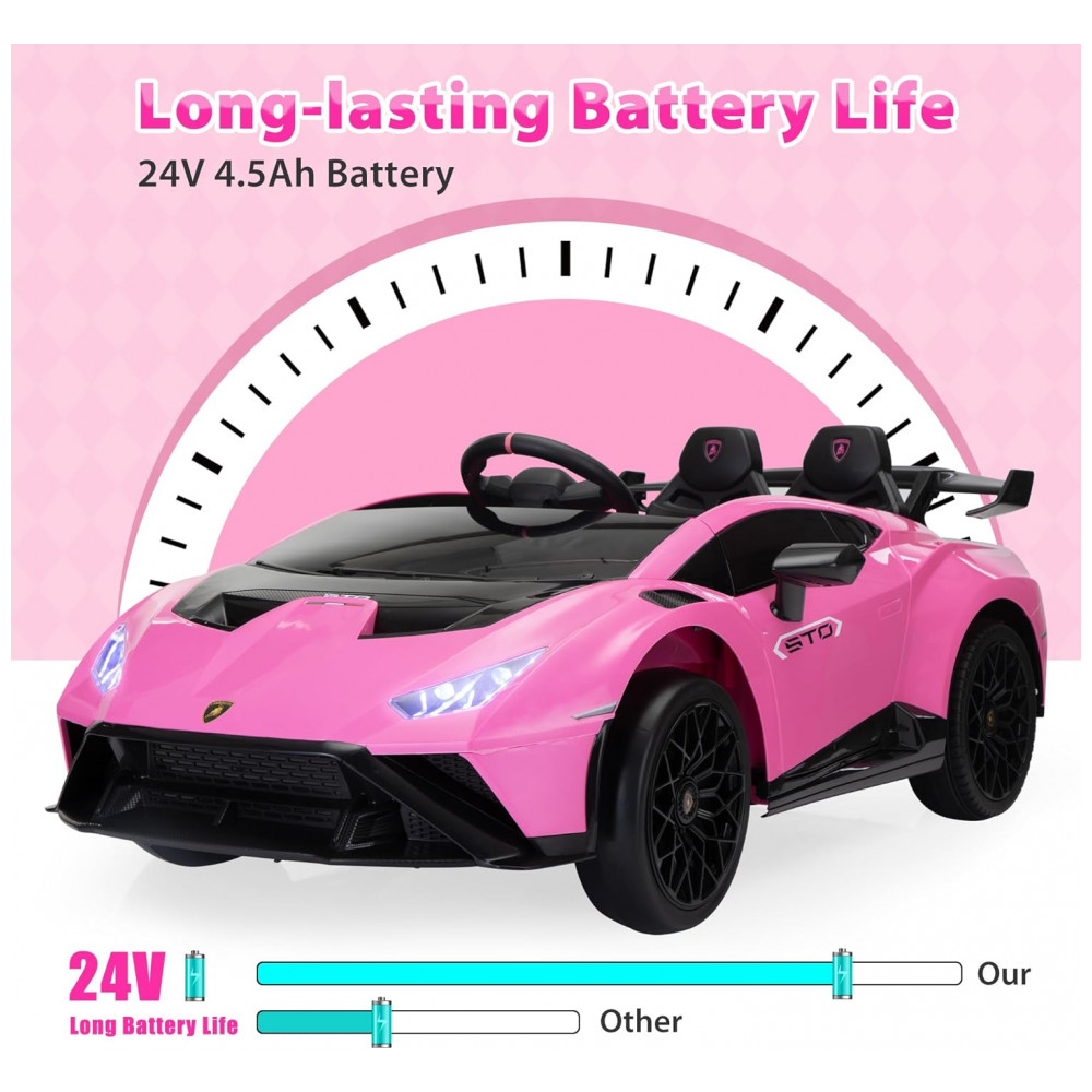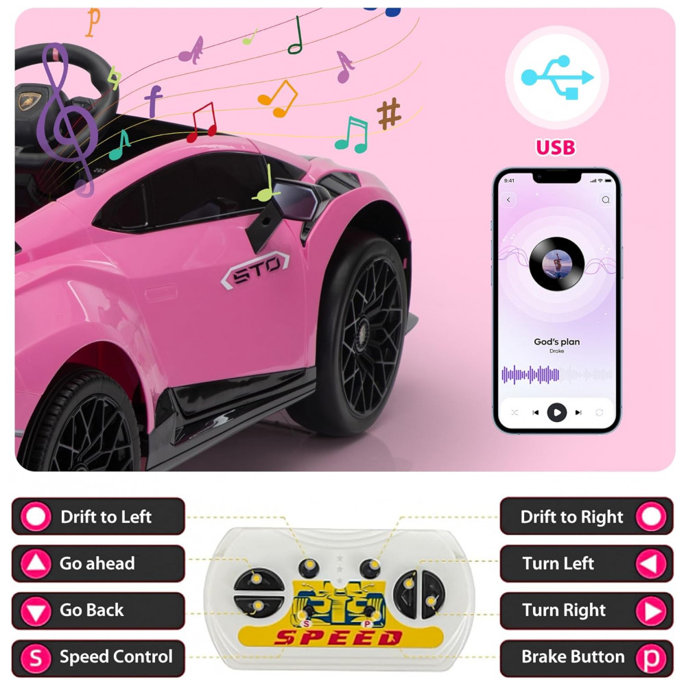 Carrinho Elétrico Infantil Lamborghini 24V Drift TOBBI Licenciado 2 Motores Controle Remoto 6-10km/h Rosa