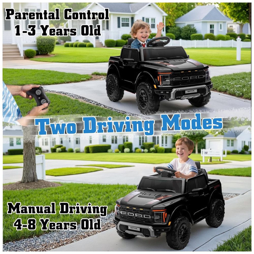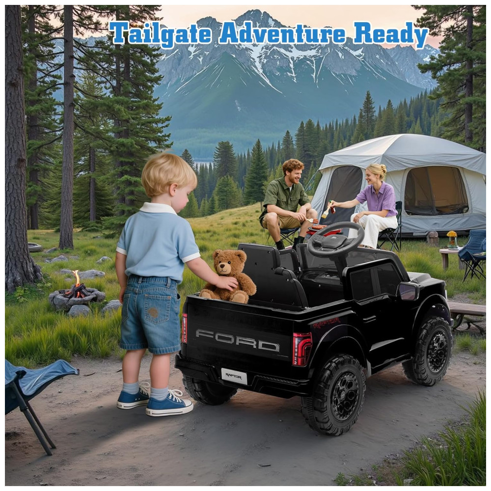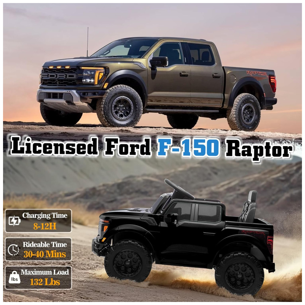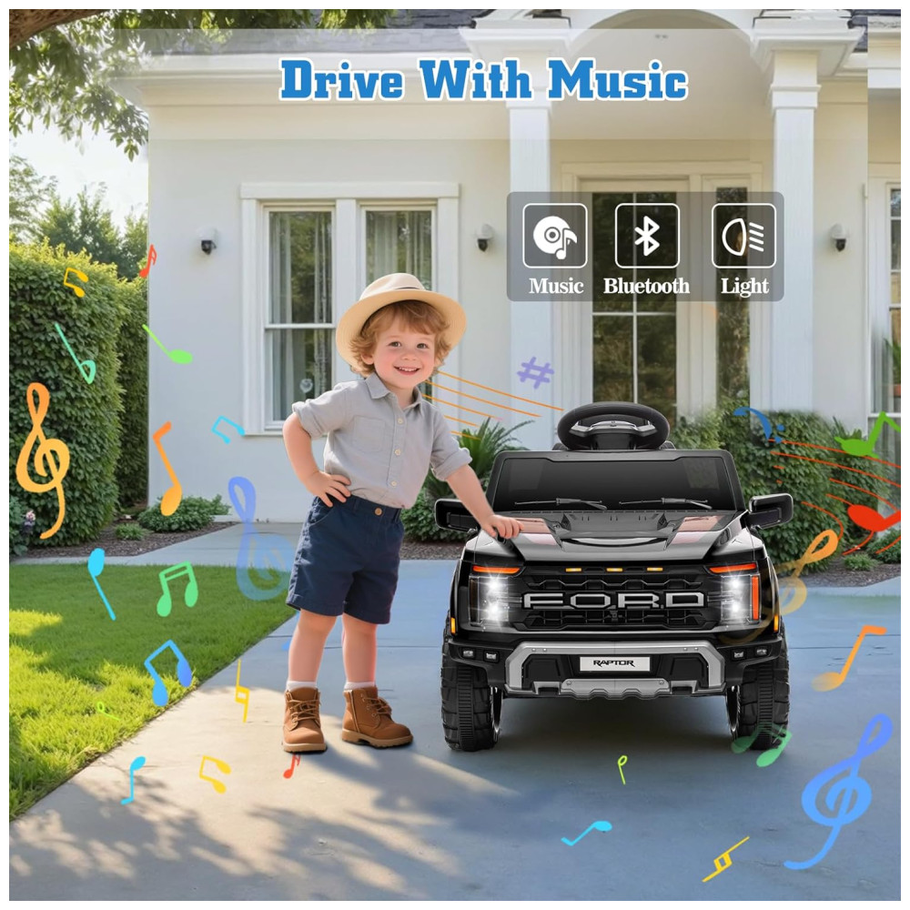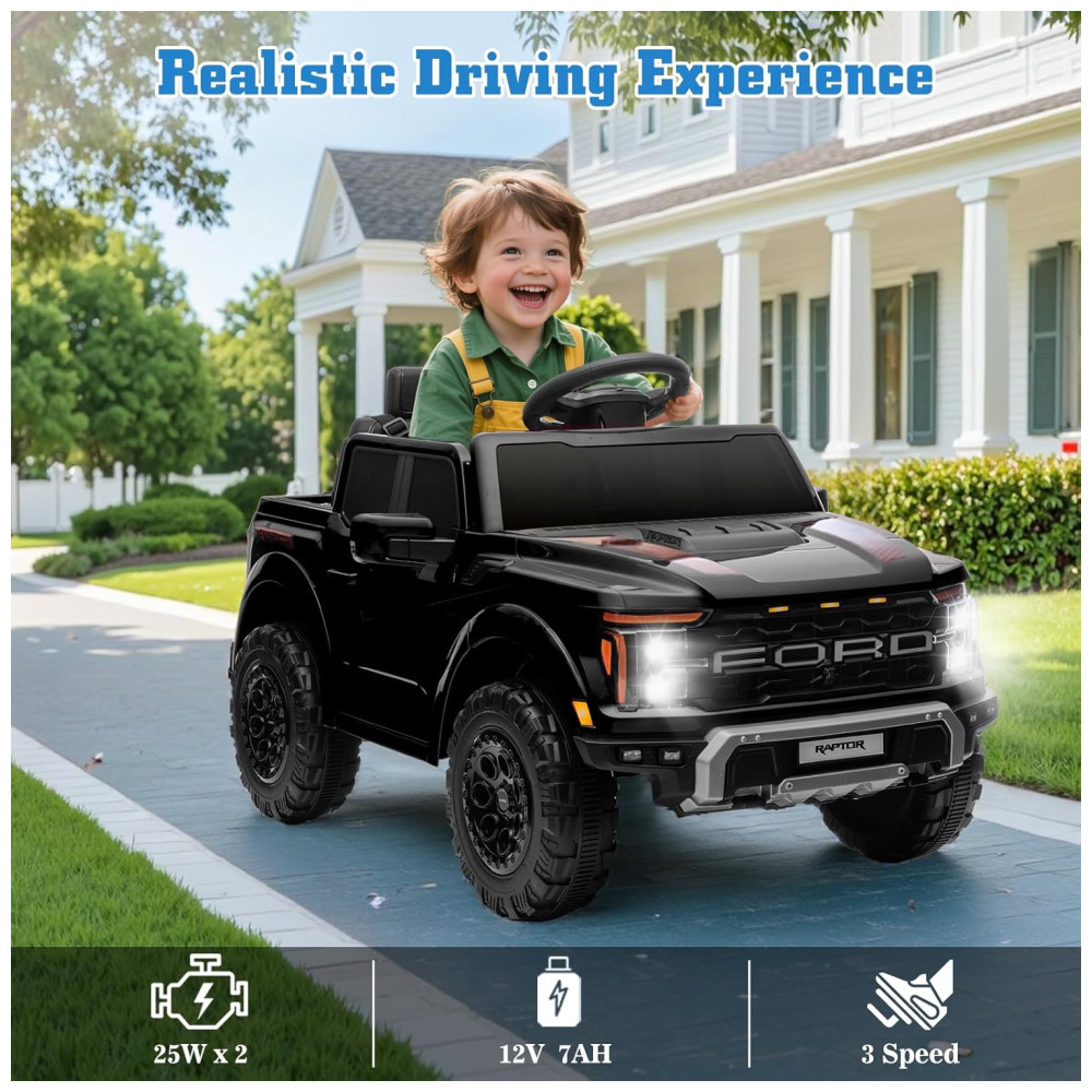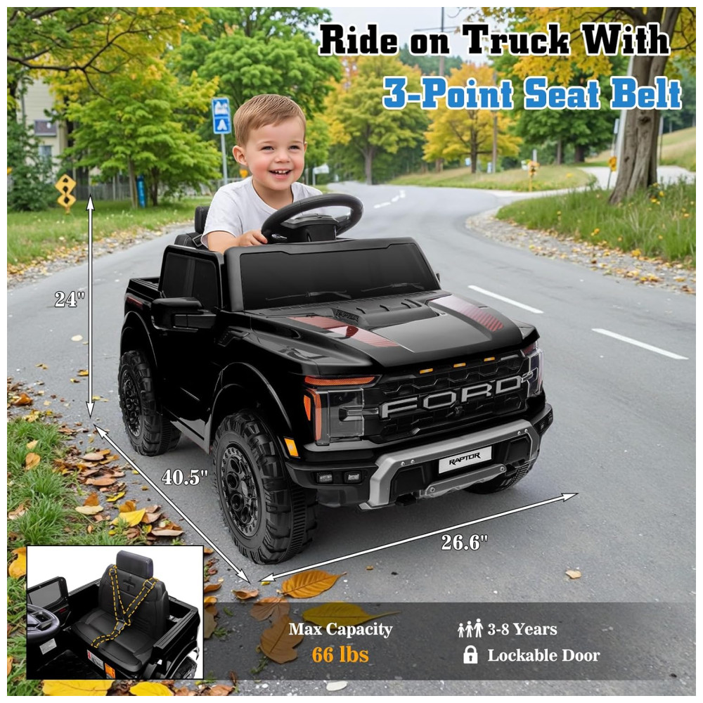 Carrinho Elétrico Infantil Licenciado Ford F150 Raptor 12V com Controle Remoto Luzes de LED Música MP3 Cinto de Segurança 3 Pontos – PretoSegmart
