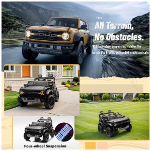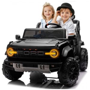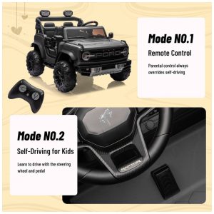 Carrinho Elétrico Licenciado Infantil 2 Lugares 24V Ford Bronco Raptor 4×4 2 Motores 90W Bluetooth Suspensão 4 Rodas Controle Remoto YOFE Preto