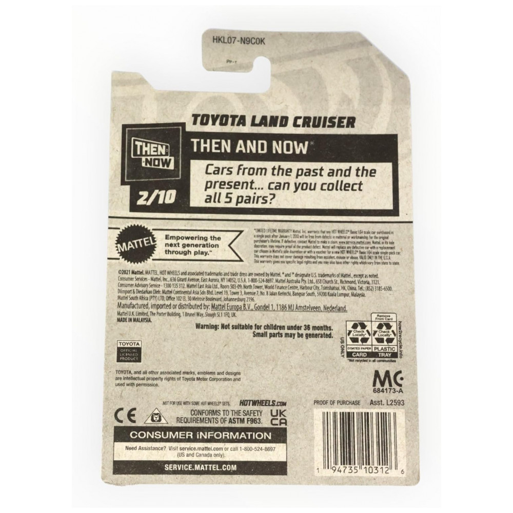 Este incrível carrinho em escala 1:64 é uma combinação perfeita entre passado e presente, destacando a evolução do Toyota Land Cruiser. Fabricado em metal fundido na Malásia, apresenta detalhes impressionantes. Com dimensões de 28,7 x 24,4 x 24,1 centímetros e peso de 100 gramas, é um item colecionável incrível para apaixonados por carros. Recomendado para maiores de 19 anos, este produto da renomada marca Mattel é uma verdadeira joia para sua coleção.