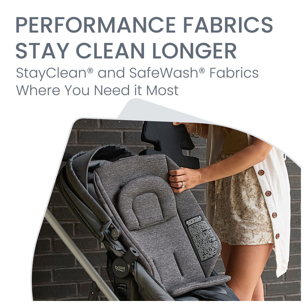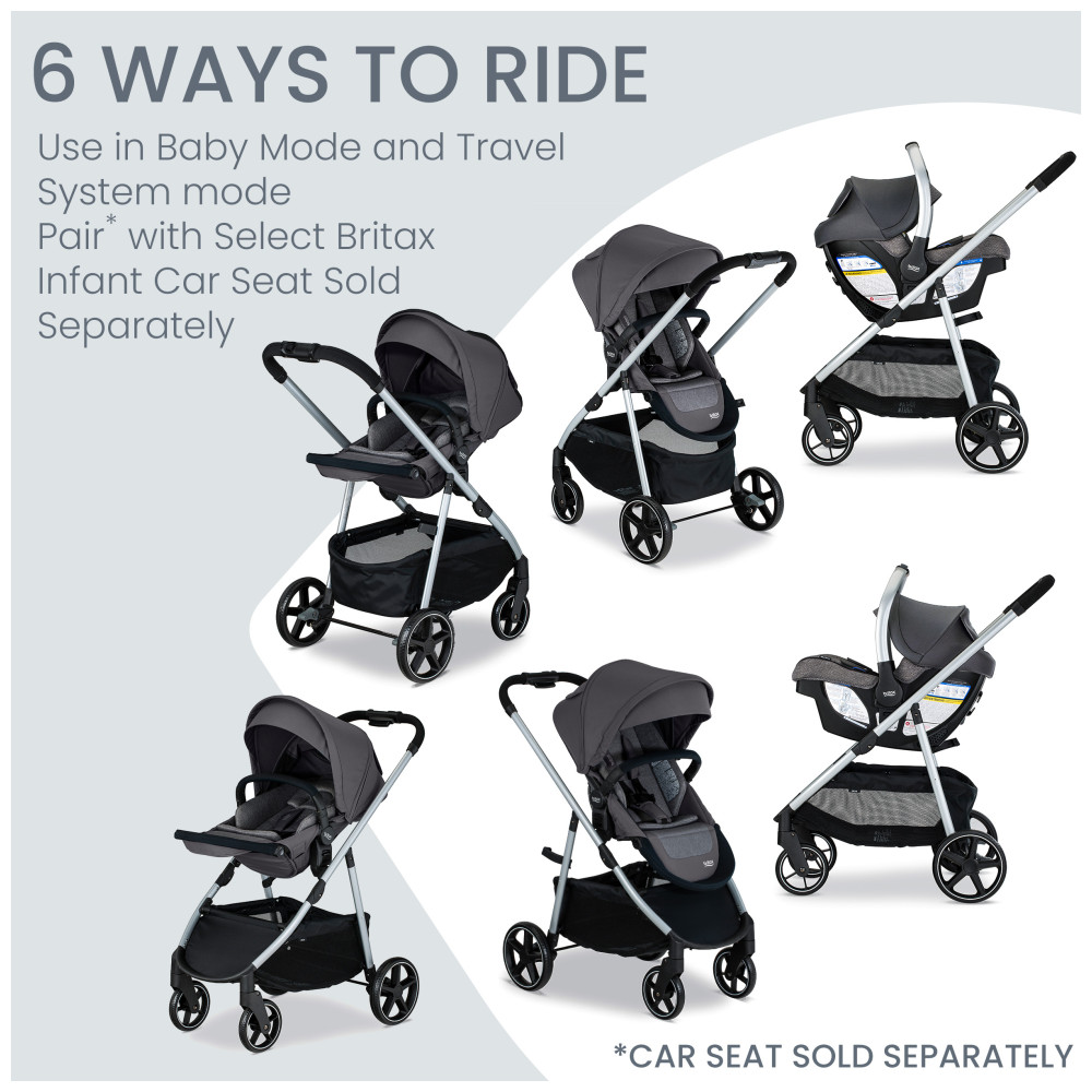 Cochecito modular para bebês Britax Grove es liviano tem 6 formas de usar cojn de material CozyFit com tecido de pontos Stone