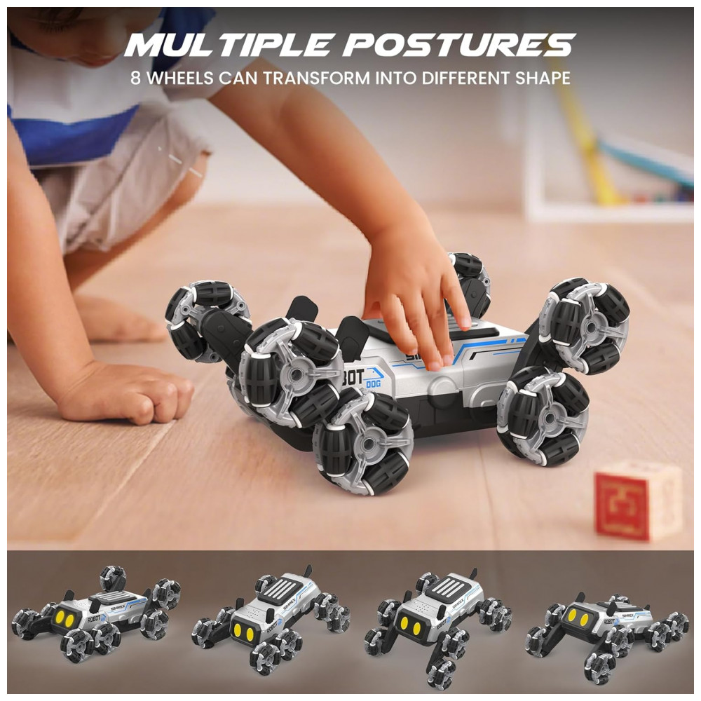 Carrinho robô cachorro SIMREX 8 rodas com rodas mecanum LED e controle por gestos TOY2502