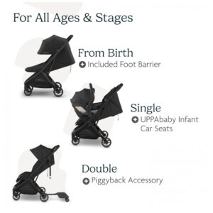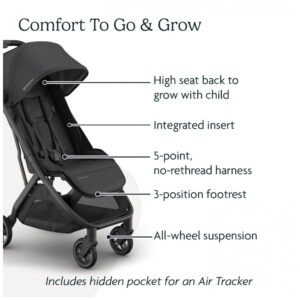 O Carrinho UPPAbaby Minu V3 Jake oferece desempenho superior com estrutura em alumínio leve e acabamento em couro genuíno. Projetado para uso desde o nascimento até 23 kg, com reclinação infinita e apoio para pernas ajustável em três posições, proporciona conforto adaptável para o crescimento da criança. Equipado com arnês de cinco pontos para segurança reforçada. Possui suspensão dianteira e traseira independente, garantindo passeios suaves para o bebê e facilidade para o cuidador. A capota extensível resistente à água oferece proteção solar UPF 50+ e inclui janela em malha para ventilação e visibilidade. O design compacto e leve é aprovado pela IATA, permitindo acomodação em compartimentos de bagagem de cabine. Cesto inferior espaçoso suporta até 9,1 kg para armazenamento eficiente. Inclui bolso oculto para acessórios como Air Tracker e alça integrada para transporte fácil quando fechado. O carrinho conta com certificação GREENGUARD Gold, garantindo baixa emissão de químicos para melhor qualidade do ar.
