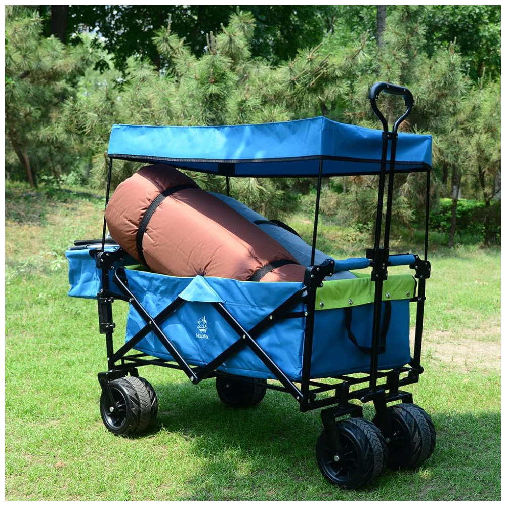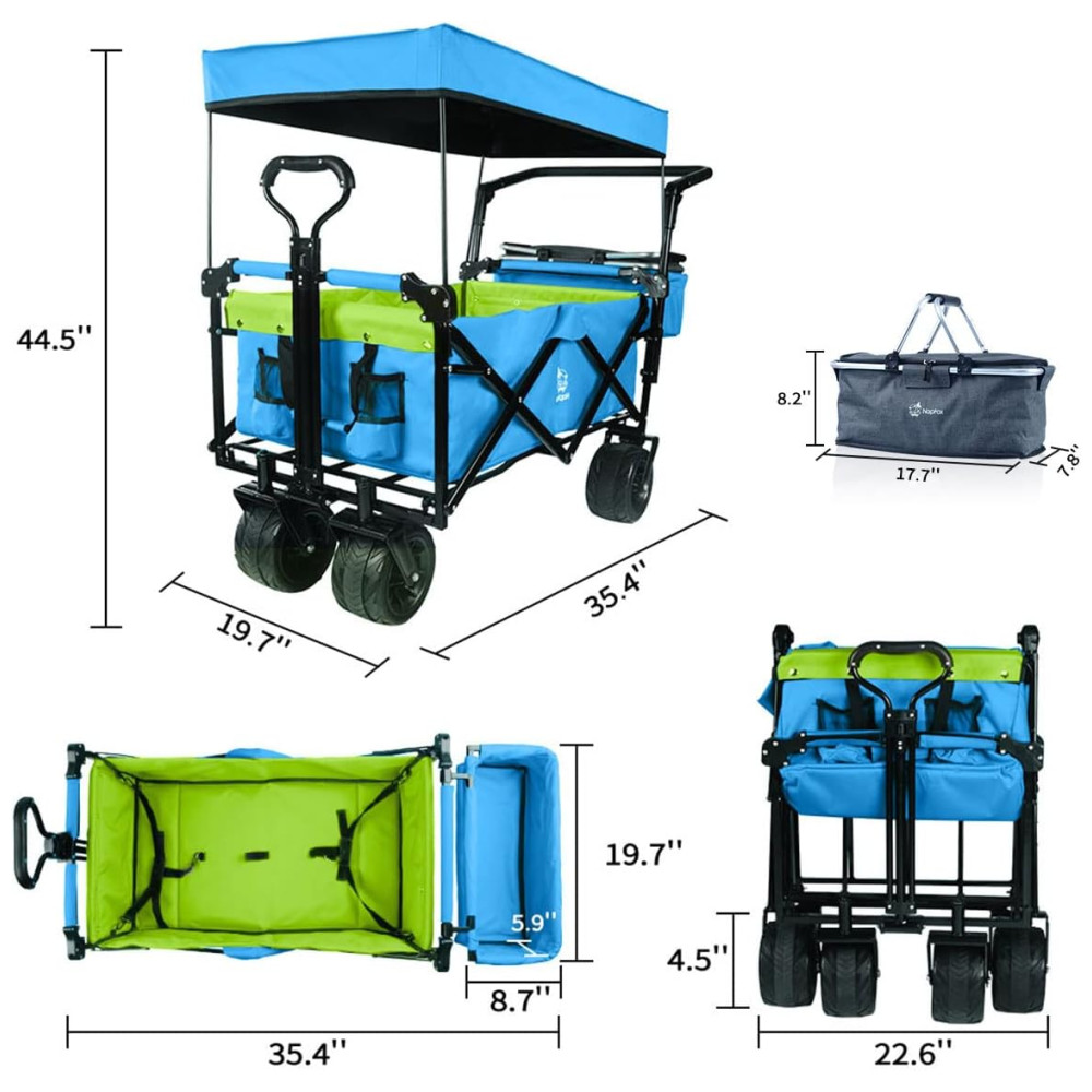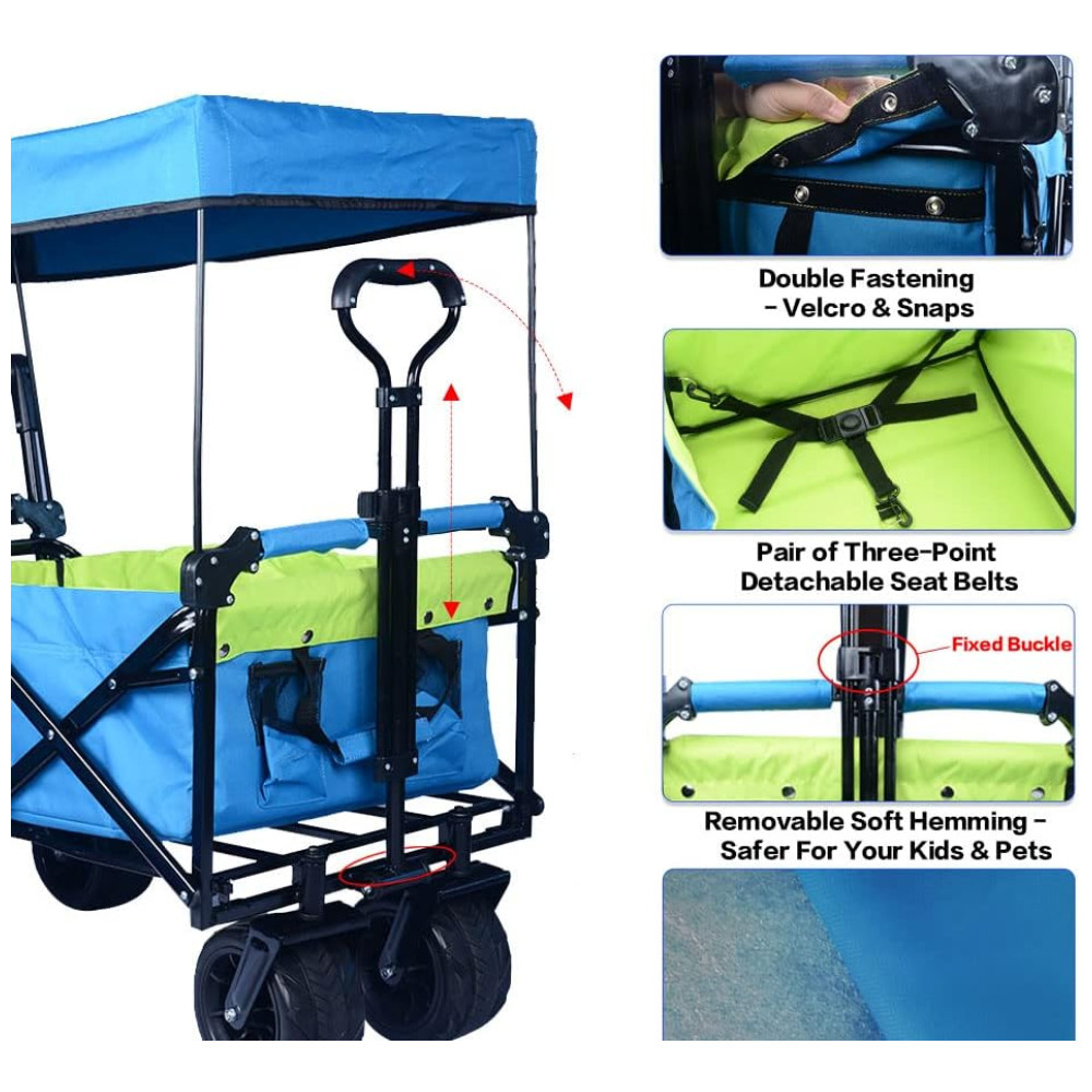 Carrinho Vagão Dobrável Multifuncional com Dossel Removível e Armazenamento Napfox Azul e Verde