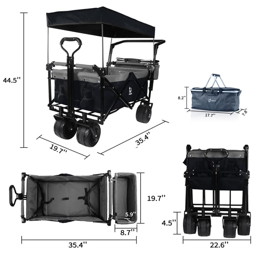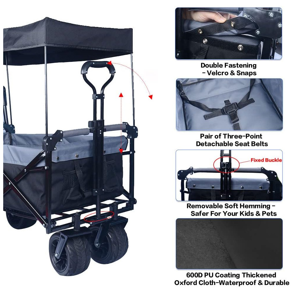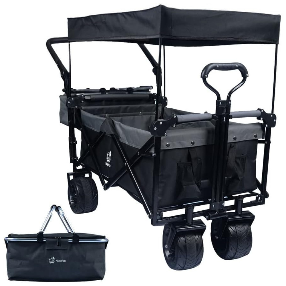 Carrinho Vagão Dobrável Multifuncional com Dossel Removível e Armazenamento Napfox Preto