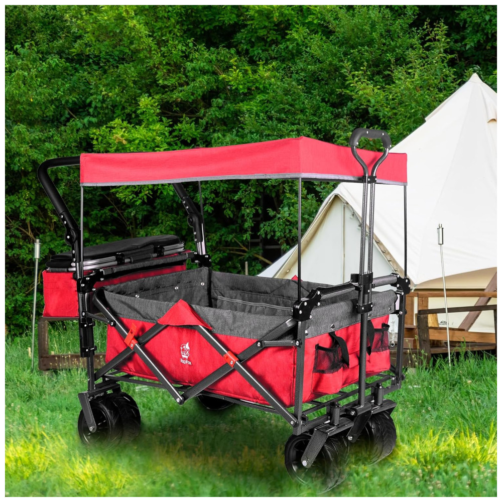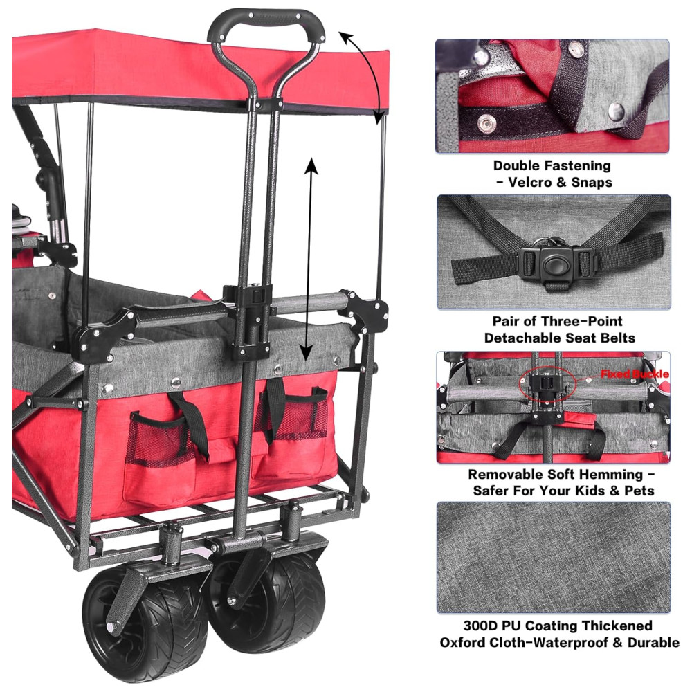 Carrinho Vagão Dobrável Multifuncional com Dossel Removível e Armazenamento Napfox Vermelho
