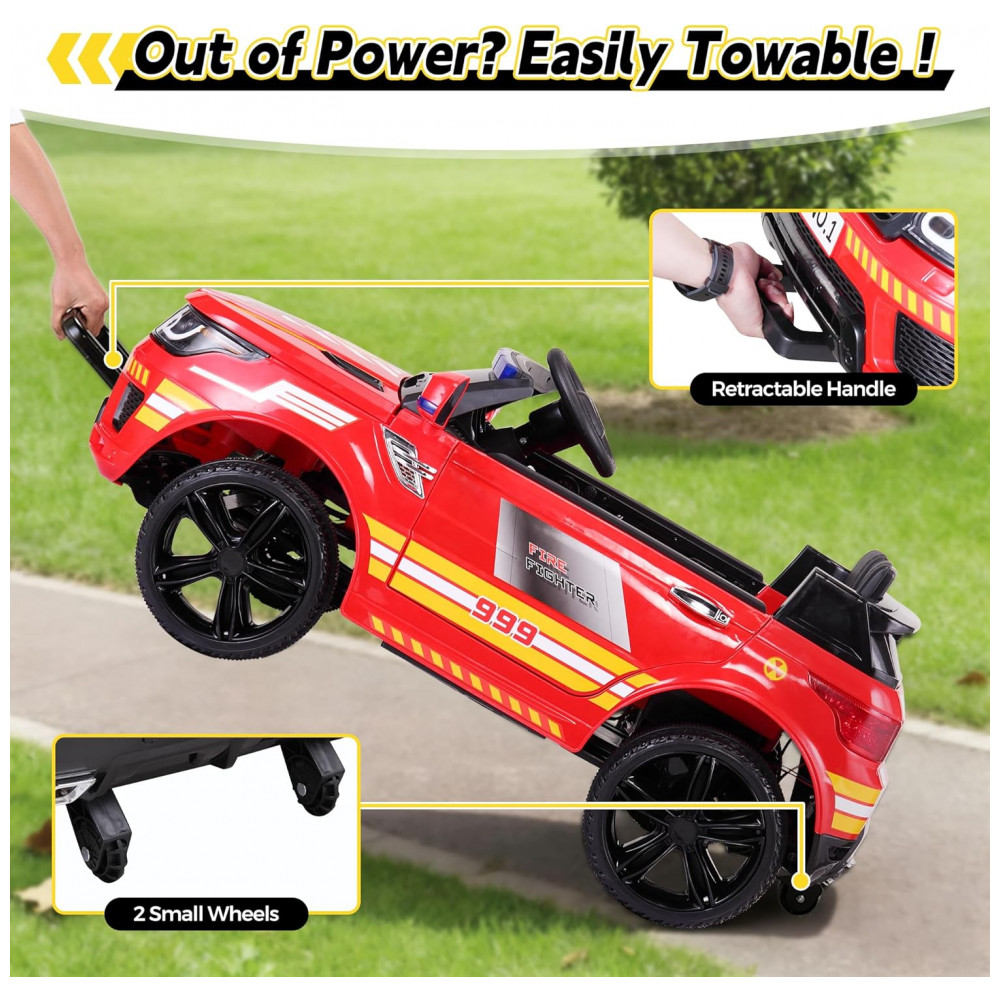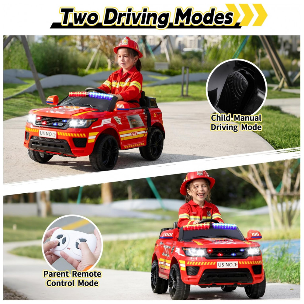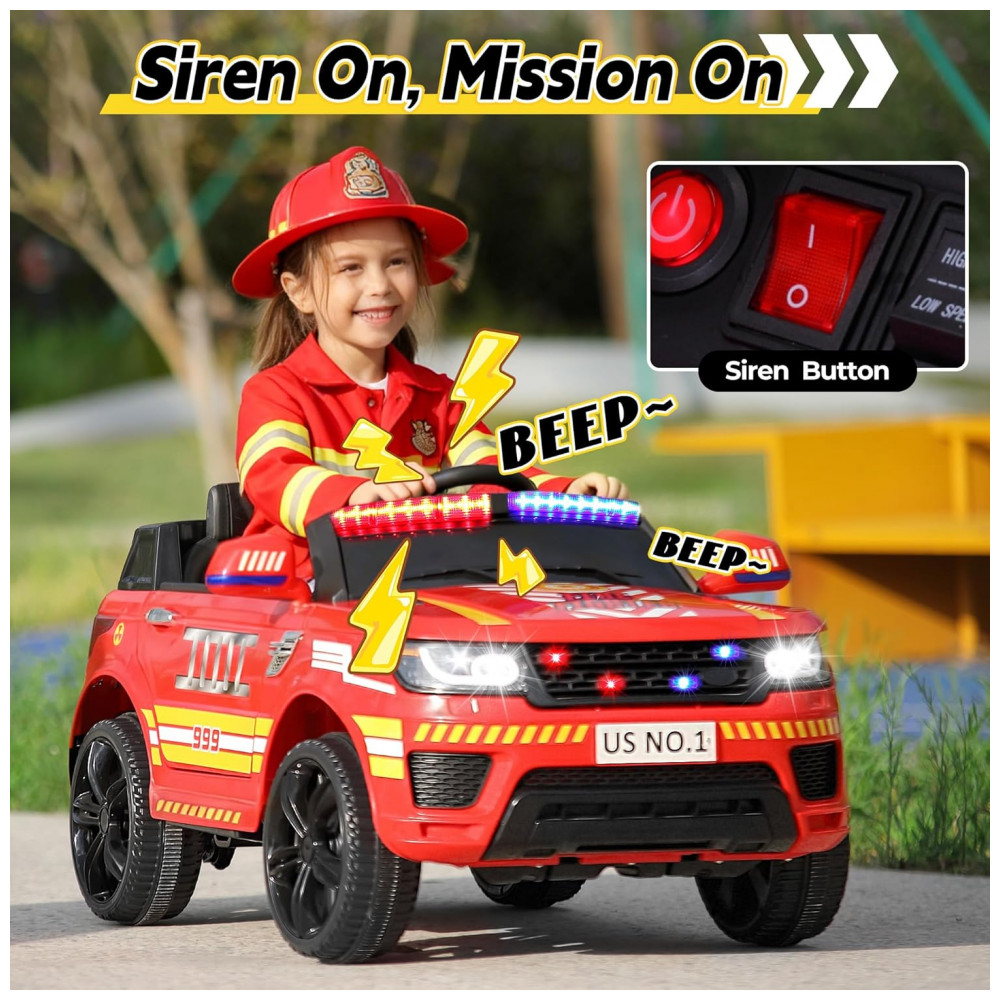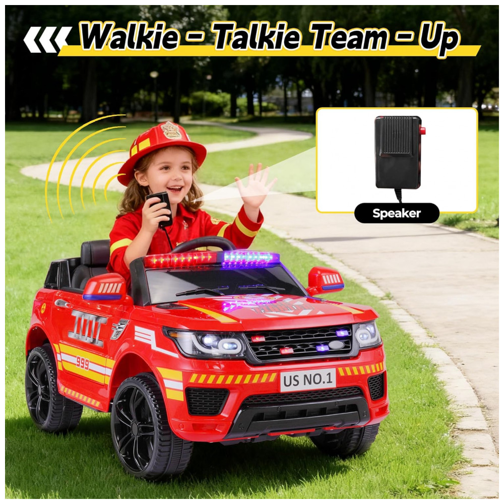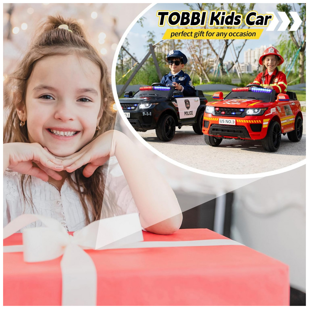 Carro Bombeiro Elétrico Infantil a Bateria 12V 2 Assentos Tobbi Vermelho