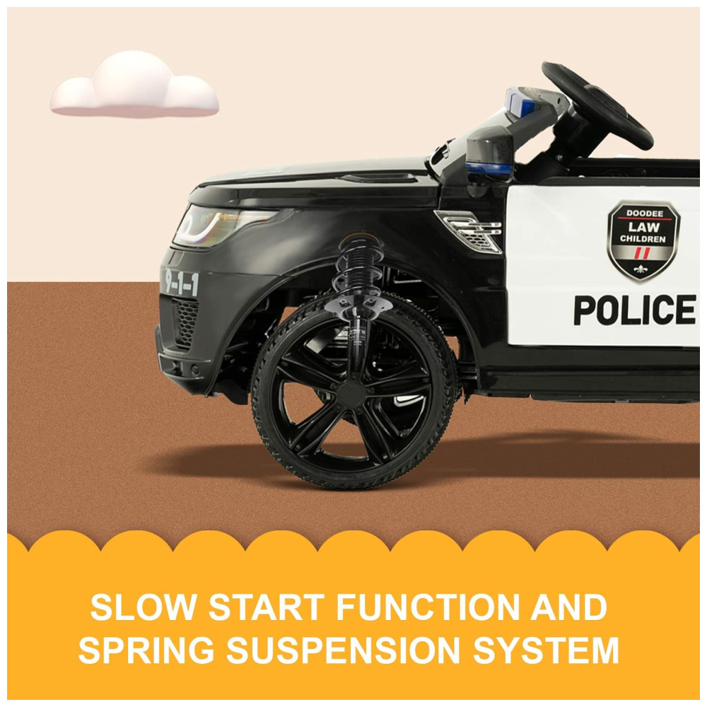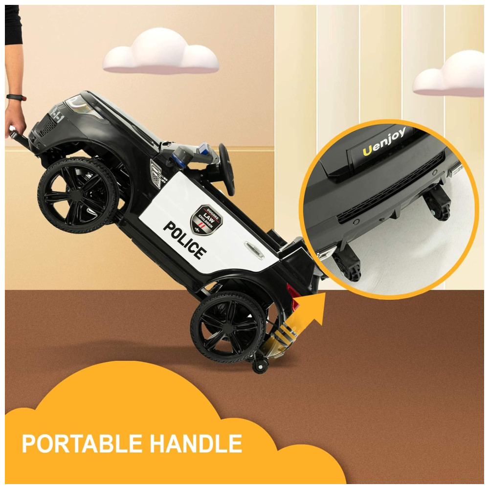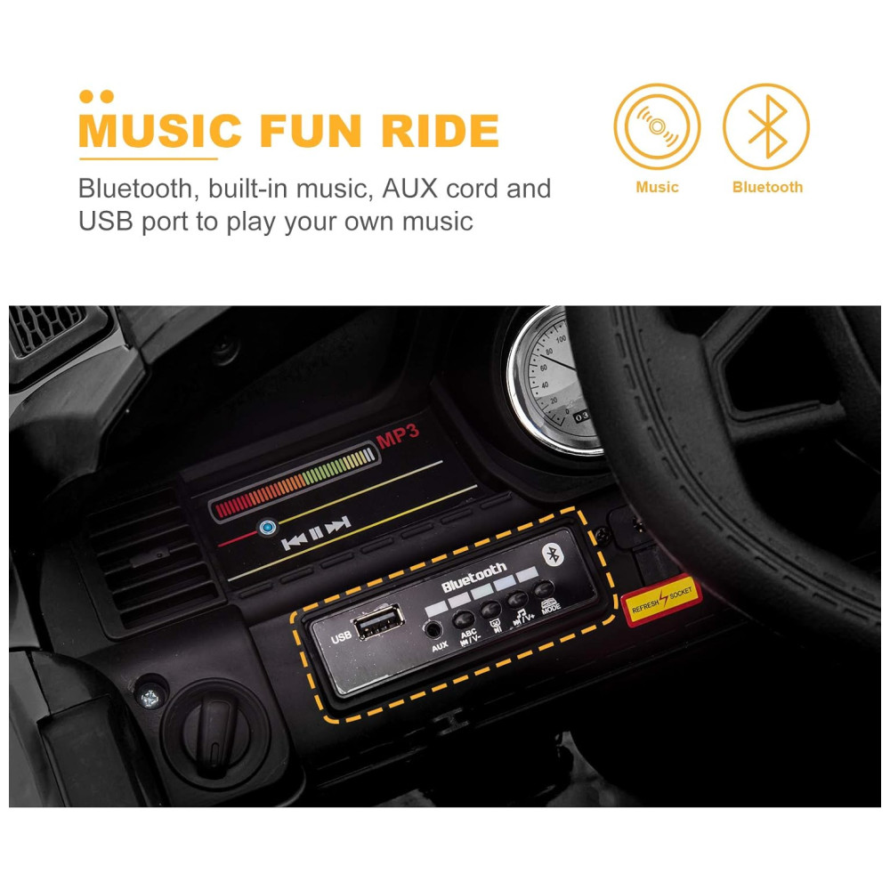 Segurança e conforto as crianças podem dirigir enquanto ouvem música, o cinto de segurança ajustável, o controle remoto dos pais e as rodas dianteiras com sistema de suspensão mantêm as crianças seguras.
