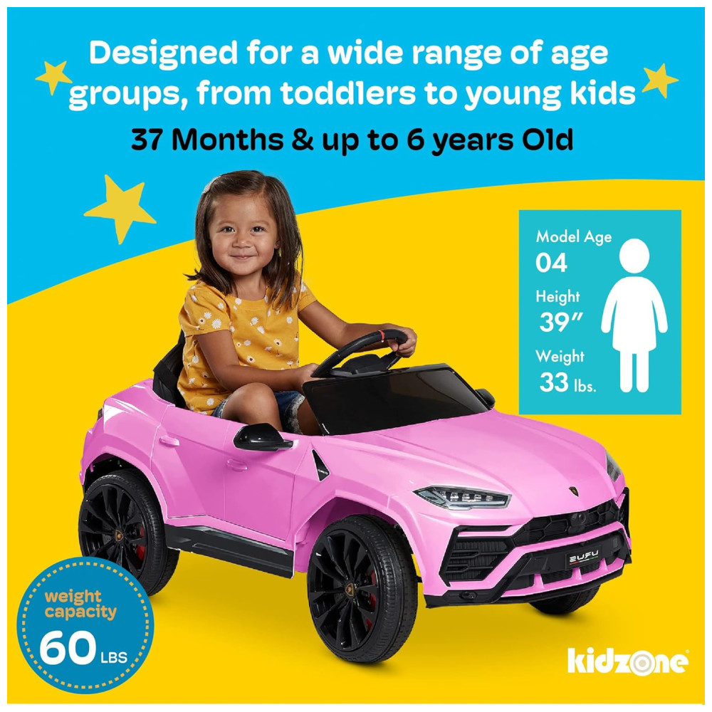 Carro Carrinho Elétrico Infantil a Bateria 12V 1 Assento com Luz LED e Suspensão de Mola KIDZONE Rosa