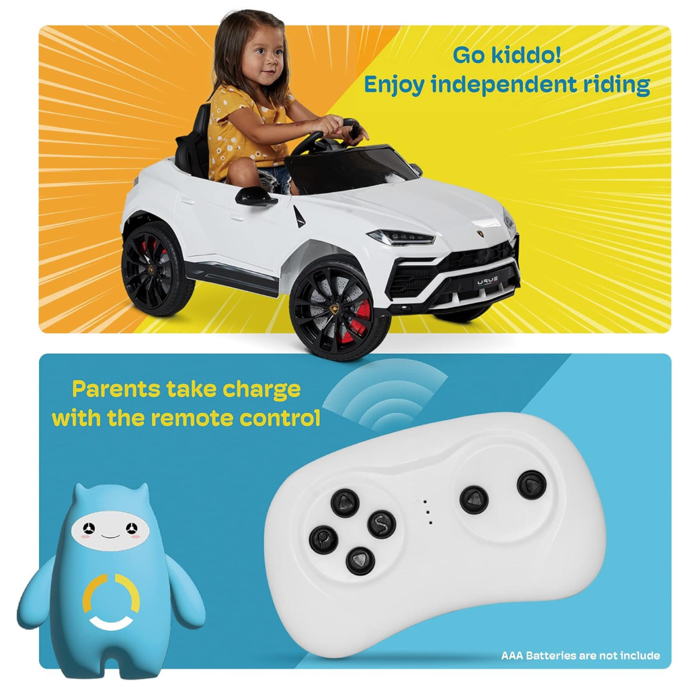 Carro Carrinho Lamborghini Urus Elétrico Infantil a Bateria 12V 1 Assento com 3 Velocidades Luz LED e Suspensão de Mola Branca KIDZONE Branco