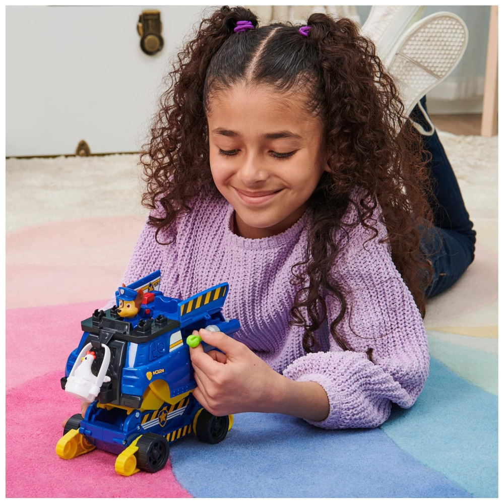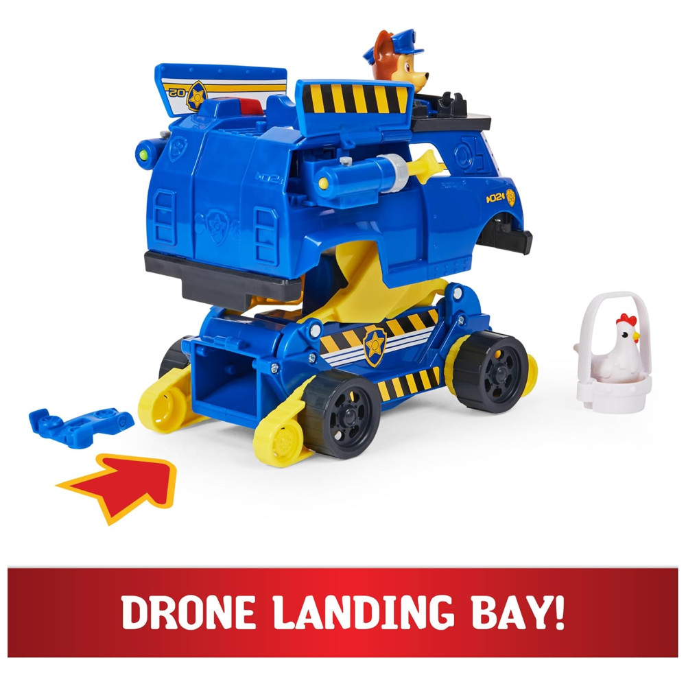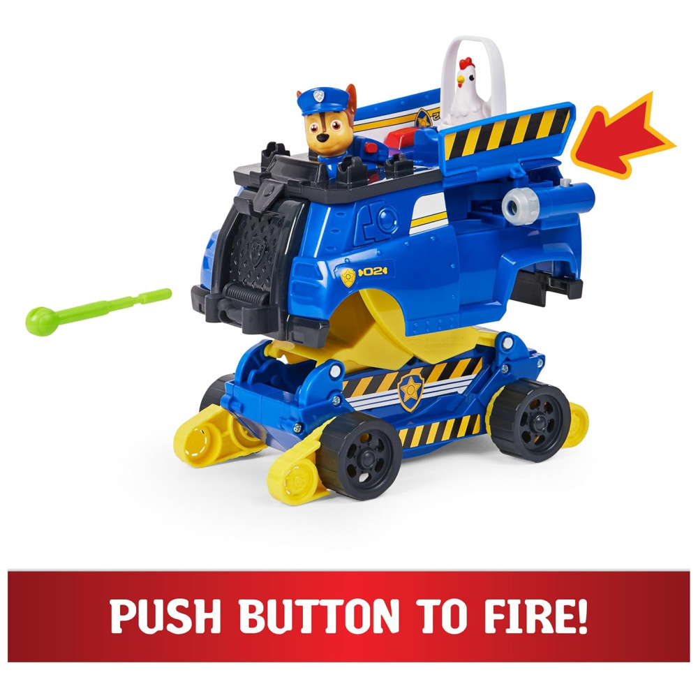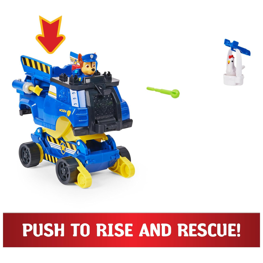 Entre em ação com o veículo Rise and Rescue do Chase, da Patrulha Canina Com gráficos e detalhes autênticos, este carro de polícia possui uma área de armazenamento para acessórios e uma emocionante transformação de resgate. Coloque sua figura de ação do Chase no banco do motorista e acelere em direção à sua missão. Empurre o veículo para baixo para entrar no modo de resgate, onde ele se transforma, revelando seus lançadores de projéteis e drone de resgate.
