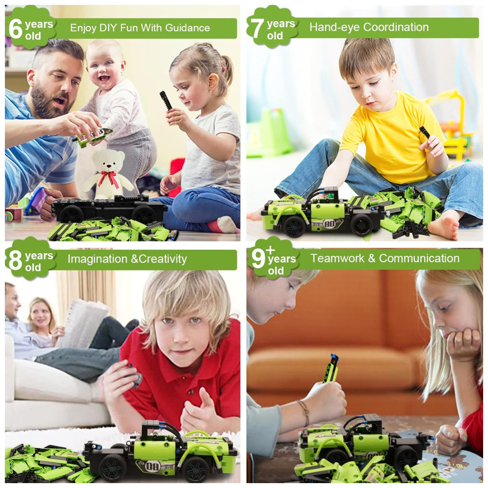 Peças Brilhantes e Coloridas O design ultrabrilhante em verde e preto torna os brinquedos mais divertidos e envolventes para crianças a partir de 8 anos. E nossos brinquedos de construção STEM também são uma ótima maneira de construir laços sociais ou fortalecer seu relacionamento com seus filhos. Grande presente para o aniversário , dia das crianças , Natal , Chanukkah , Páscoa , atividades acampamento de verão , Black Friday , de volta à escola