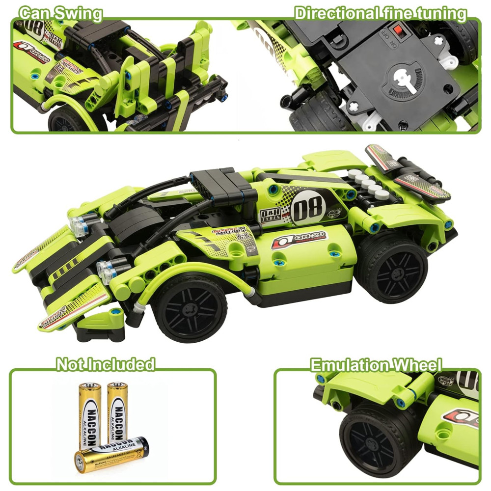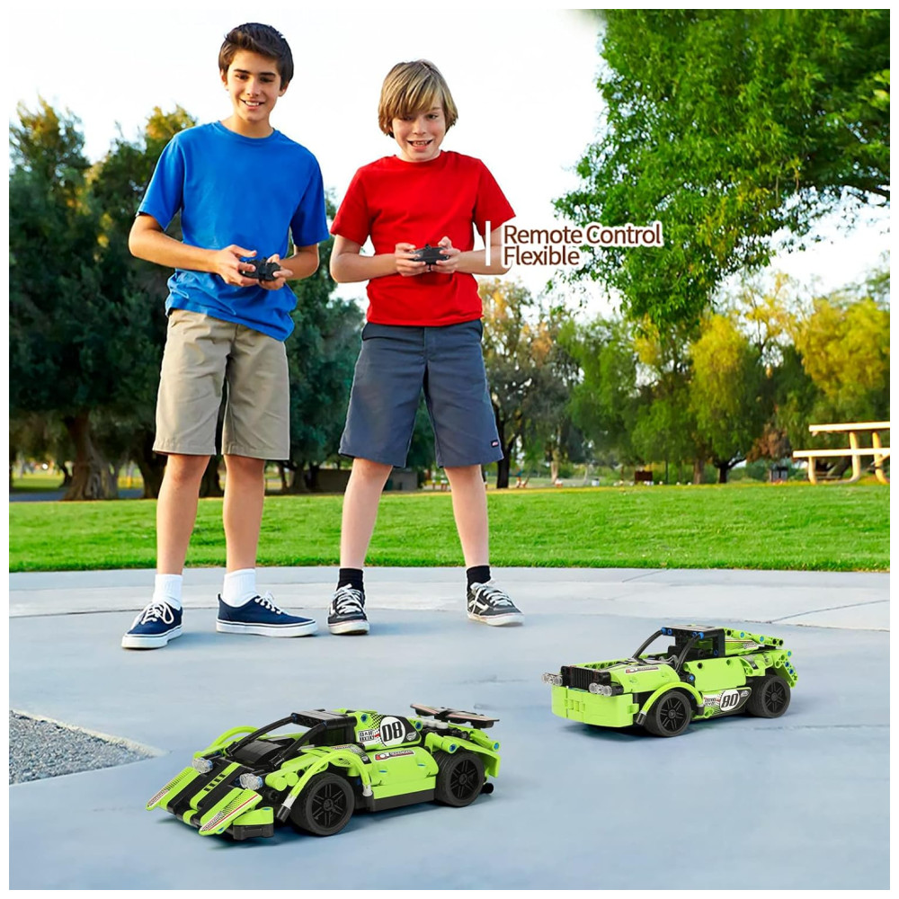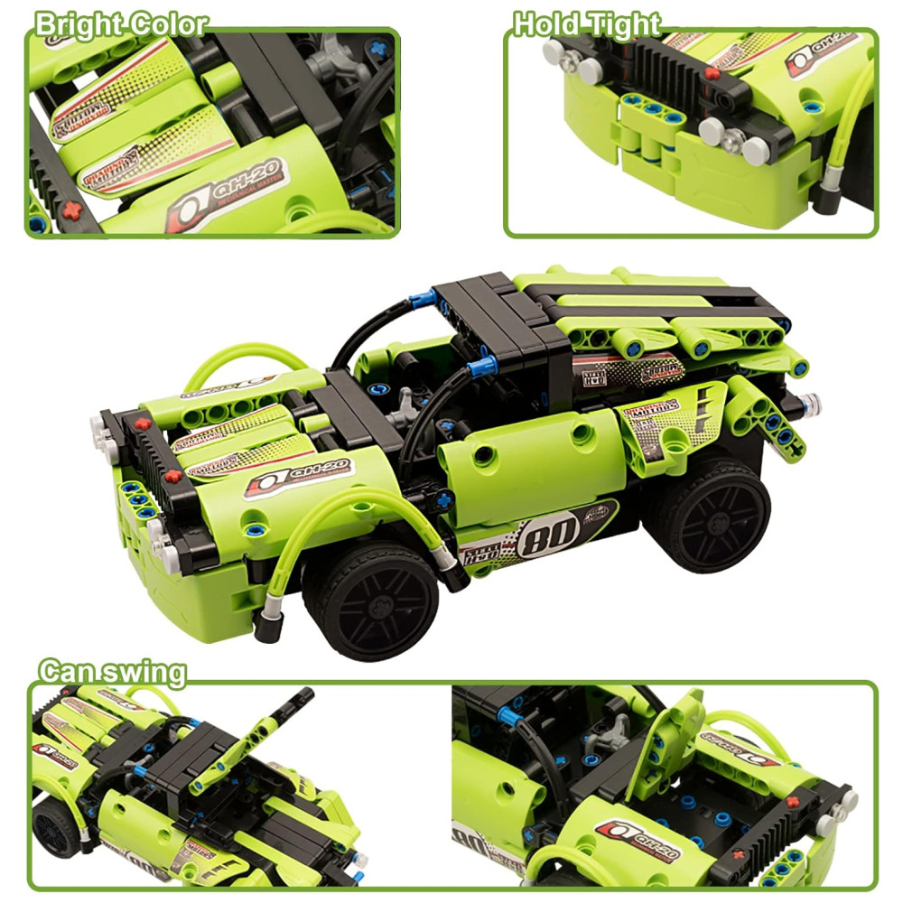 Criação de veículos 2 em 1 este conjunto de construção permite fazer um caminhão off road e um carro de corrida com peças fáceis de usar que são perfeitas para construção. E quando terminar, use o controle remoto para conduzi los