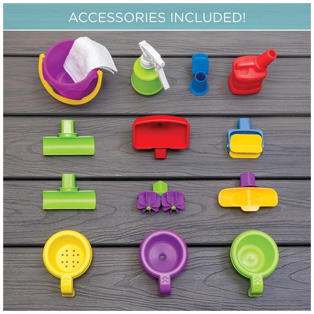 É uma ótima maneira para as crianças imitarem seus modelos adultos e cuidarem do seu próprio carro. Incentiva a brincadeira social com várias estações para as crianças se revezarem e praticarem o compartilhamento. Fabricado nos EUA e peças importadas, possui tampões de drenagem anti vazamento em ambas as bacias para manter a água durante o recreio e facilitar a limpeza. As crianças podem até drenar a água sozinhas enquanto trocam o óleo do carro. Há ainda muito espaço para várias crianças brincarem juntas, como atividades em pé nas pias da frente e de trás, e sentar dentro do carro e fingir que está dirigindo Além disso, derramar água na bandeja superior e observá la cair nas bacias abaixo ensina o jogo de causa e efeito. As crianças ouvirão o barulho da água no tanque de gasolina, o barulho do limpador de para brisa e a queda da chuva enquanto a água escorre pelo labirinto, acrescentando uma extensa exploração sensorial à experiência lúdica do centro de atividades aquáticas. Emular a limpeza é um padrão de brincadeira popular e divertido na infância, e este brinquedo estacionário para lavagem de carros é uma ótima maneira de incentivar seu filho a pensar fora da caixa e expandir sua mente para imaginar sua própria versão de um lava rápido.