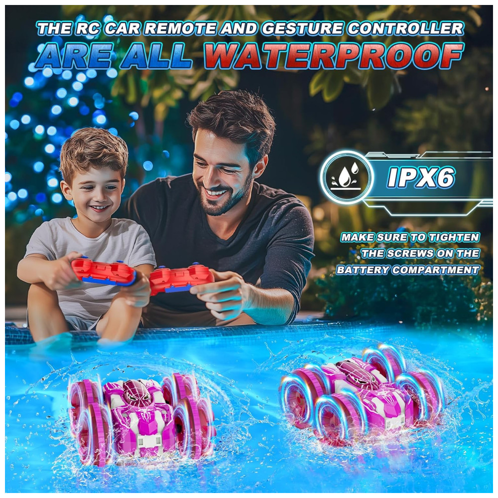 Este carrinho de controle remoto é totalmente à prova d’água, permitindo que ele seja utilizado tanto em terra quanto na água sem preocupações. Com excelente durabilidade e estabilidade, foi projetado para enfrentar diversos tipos de terrenos, como praias, gramados, caminhos lamacentos e piscinas. Equipado com um motor de alta eficiência, oferece uma forte força de direção e suporta rotação de 360 graus em terra e na água. Com tecnologia de controle remoto 2.4GHz, permite que vários carros sejam controlados simultaneamente, ideal para competições entre amigos e diversão em família. Com luzes de LED e operação intuitiva, é um presente divertido e emocionante para crianças a partir de 4 anos.