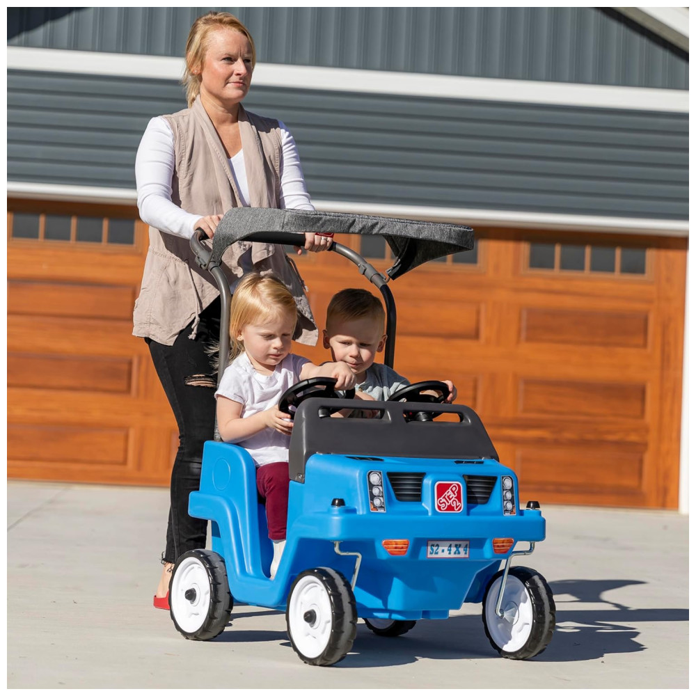 Carro de Empurrar Infantil Side-by-Side Push Around SUV 2 Assentos com Cintos de Segurança e Buzinas Suporta Até 453 kg Para Crianças de 15 a 5 Anos Step2 Azul