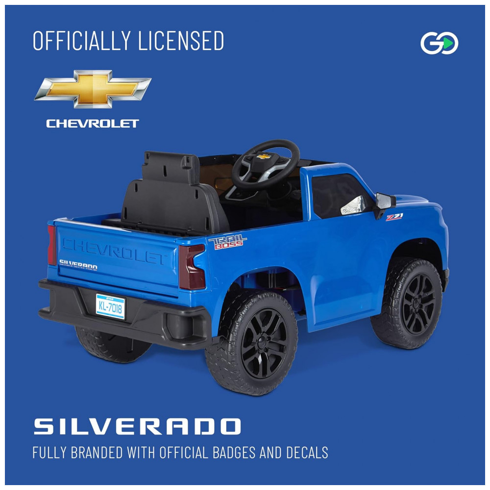 Assentos para 1 pessoa Seu filho fará um cruzeiro confortável neste carro de brinquedo para motociclistas solo. Chevy Silverado, licenciado oficialmente, foi construído para um passageiro de até 29 kg, com idades de 3 7 anos.