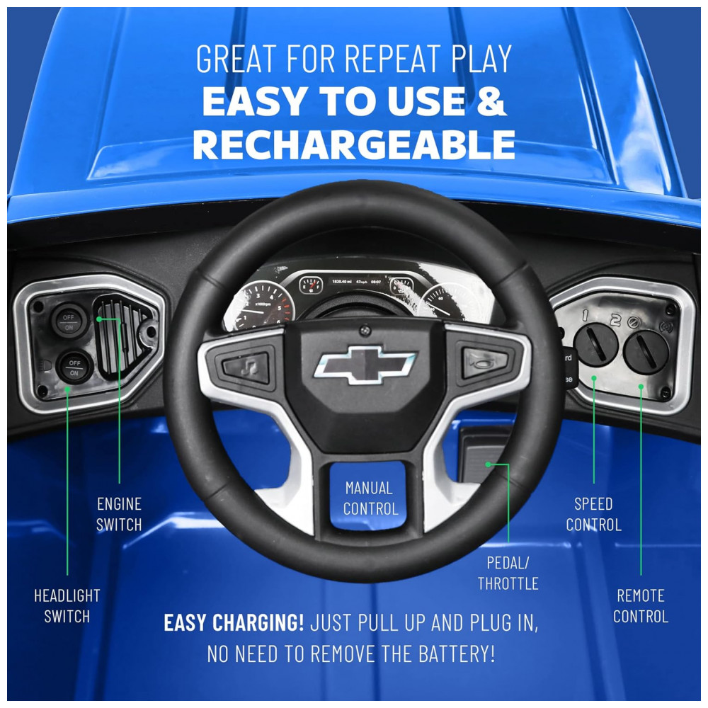 Ótimo presente Perfeito para crianças mais velhas ou crianças pequenas, meninas ou meninos, este caminhão Chevy com 1 assento de carro é uma idéia legal e única para presentes de brinquedos para crianças. Seu filho vai adorar passear pelo parque, entrada de automóveis ou bairro em grande estilo com irmãos ou amigos neste passeio elegante e azul no carro