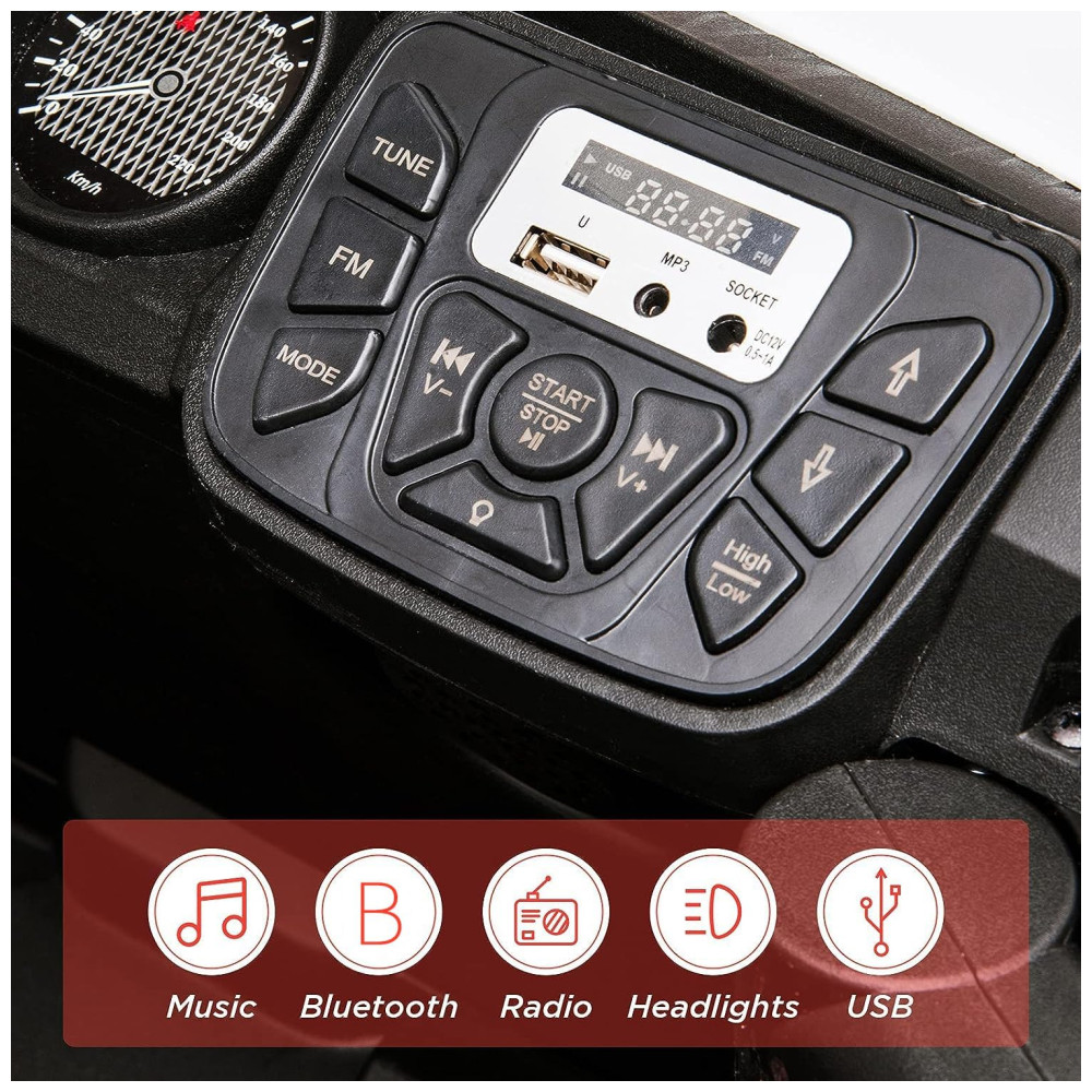BUILD IN FUN o passeio RCtown equipado com MP3, porta USB, entrada AUX, rádio FM, faróis de LED brilhantes, som do motor para proporcionar muita diversão ao seu filho. O compartimento de zenamento traseiro permitirá que seus filhos levem seus brinquedos com eles.
