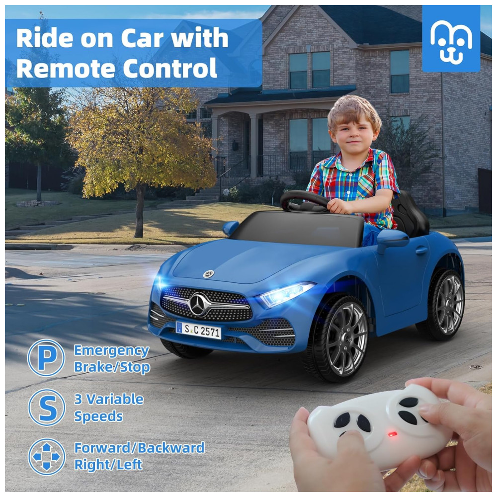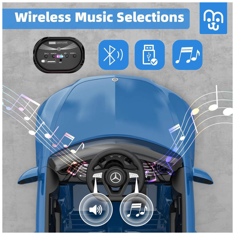 Carro Elétrico Infantil 12V com Controle Remoto e Reprodutor de Música Bluetooth – Velocidade Máxima de 5km/h – Presente para Meninos e Meninas AzulMiniature Motors