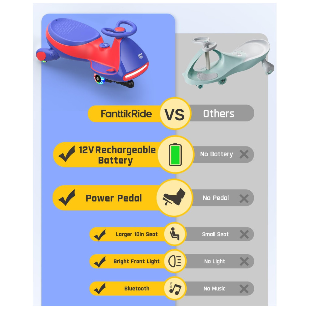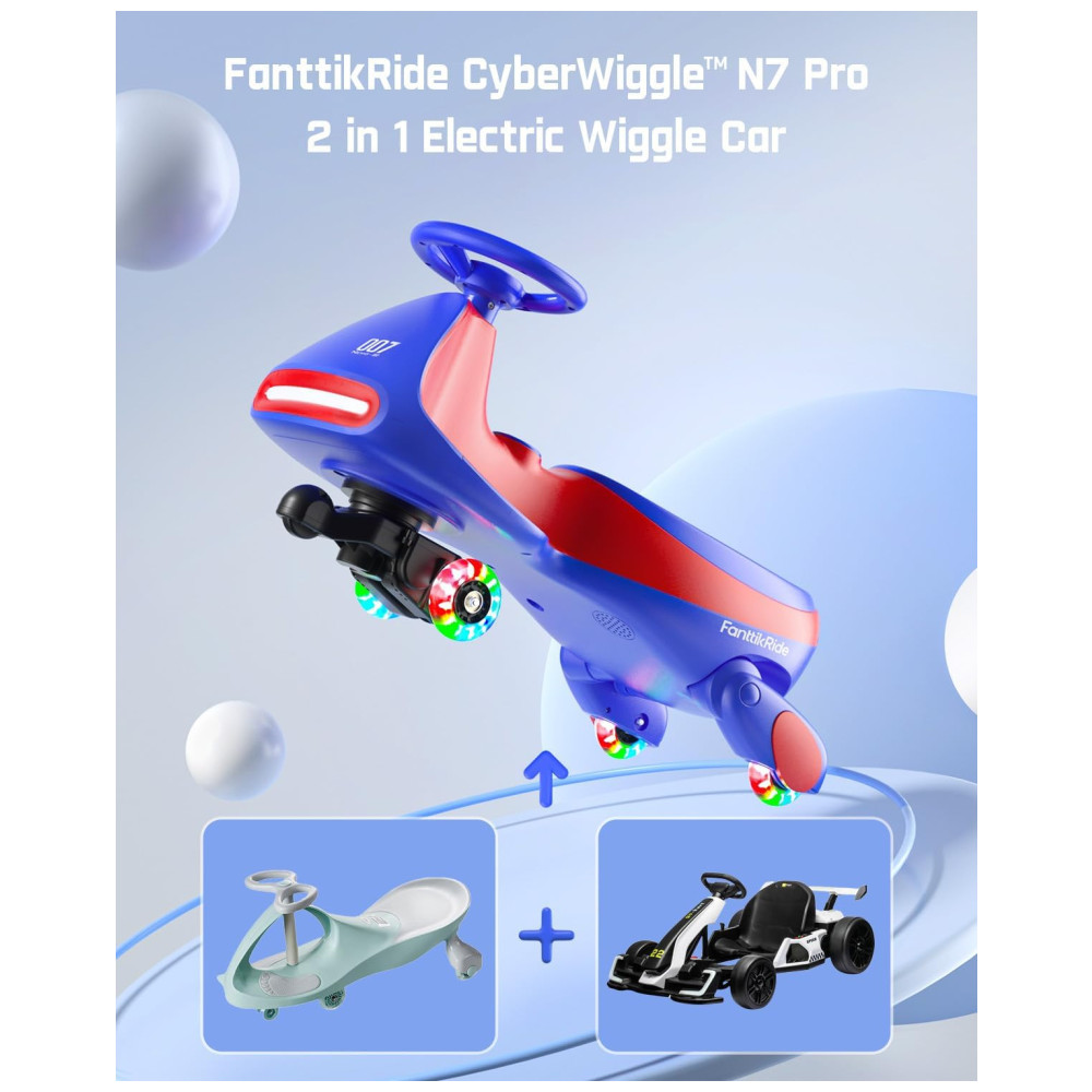 Carro Elétrico Infantil 12V FanttikRide N7 Pro – CyberWiggle 2 em 1 Antitombo Rodas com Luzes Pedal e Bateria Recarregável