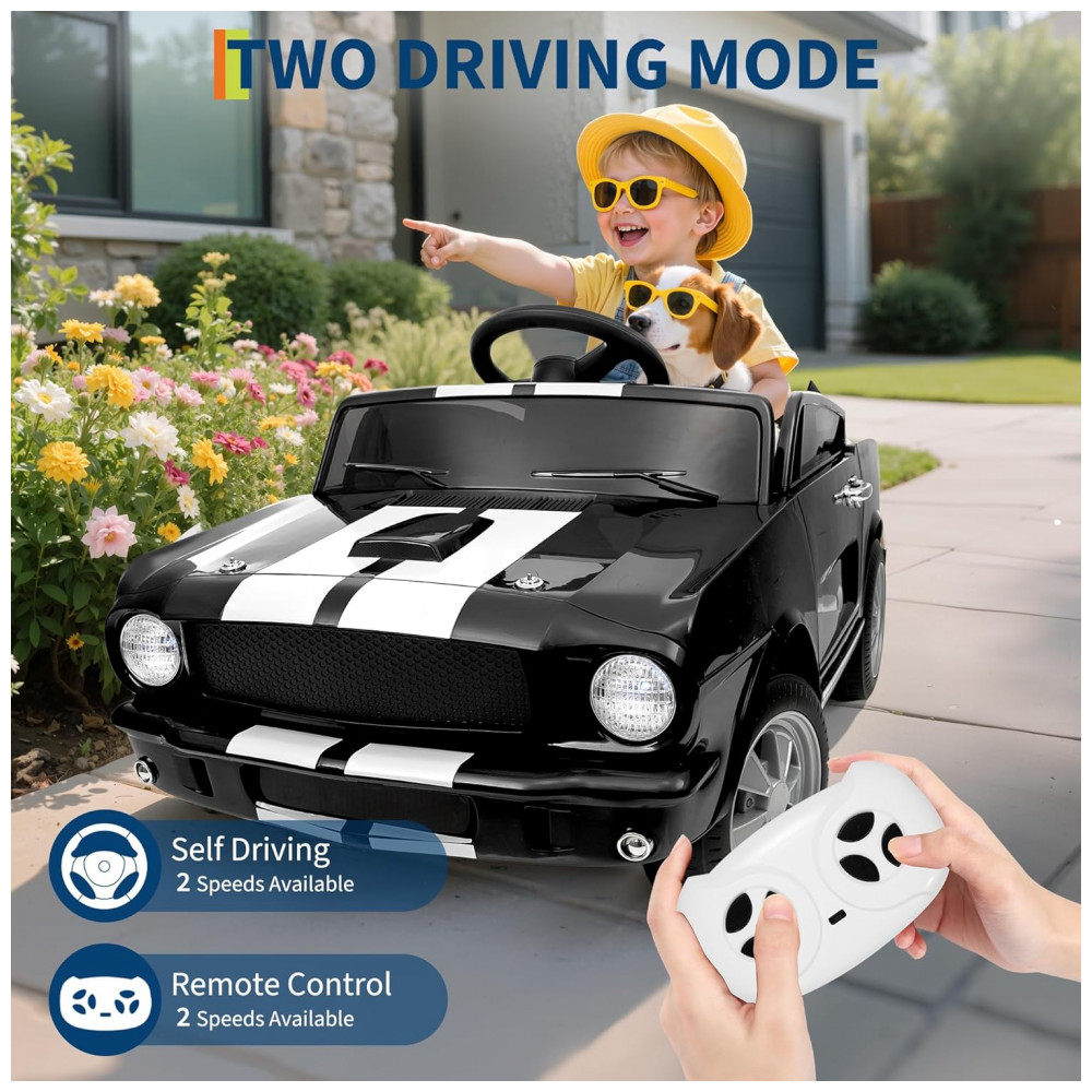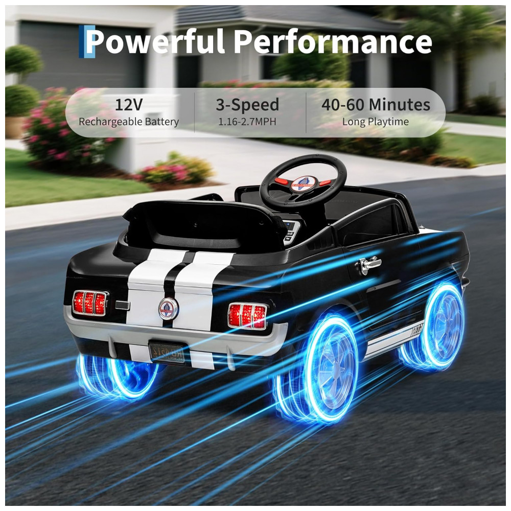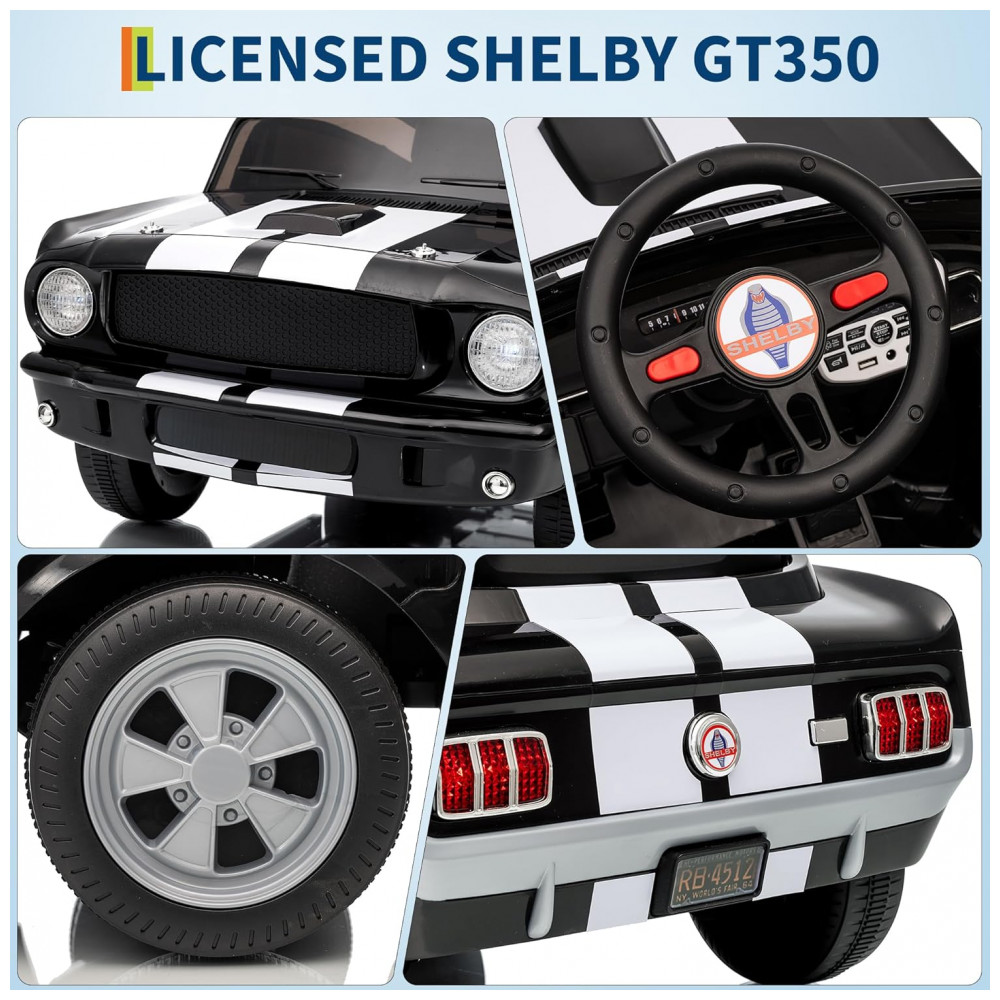 Carro Elétrico Infantil 12V INFANS Shelby Licenciado Controle Remoto Bluetooth Suspensão Cinto de Segurança 3 Velocidades Preto
