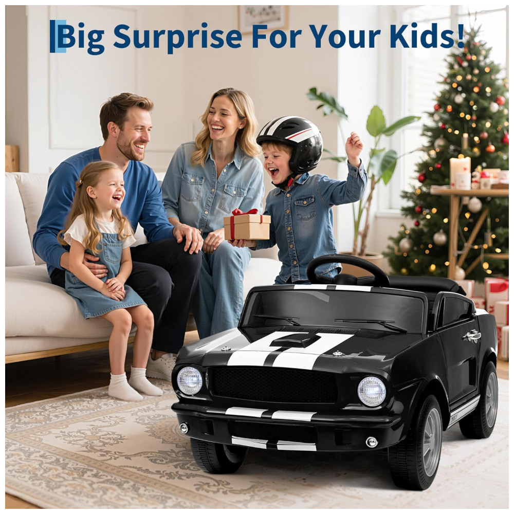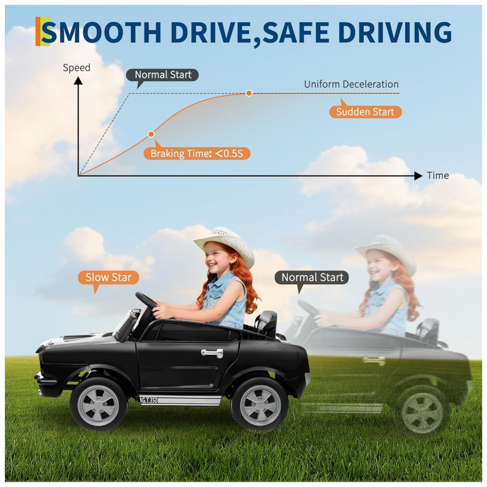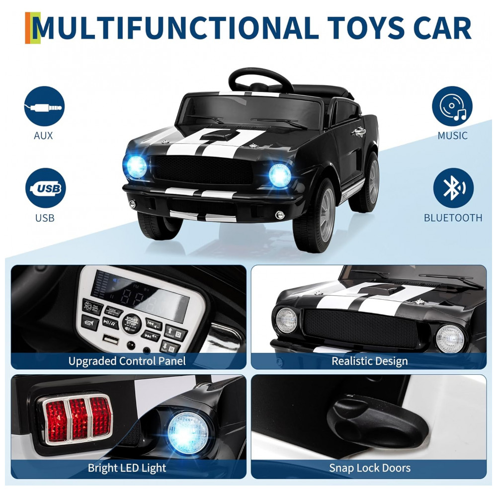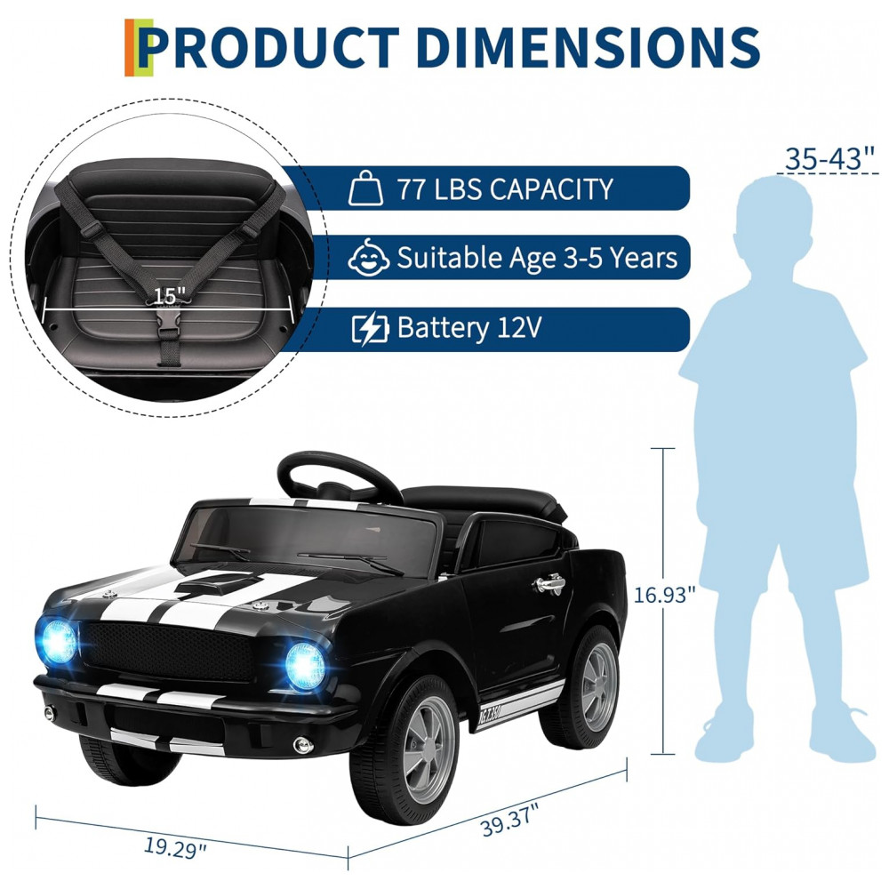 Carro Elétrico Infantil 12V INFANS Shelby Licenciado Controle Remoto Bluetooth Suspensão Cinto de Segurança 3 Velocidades Preto