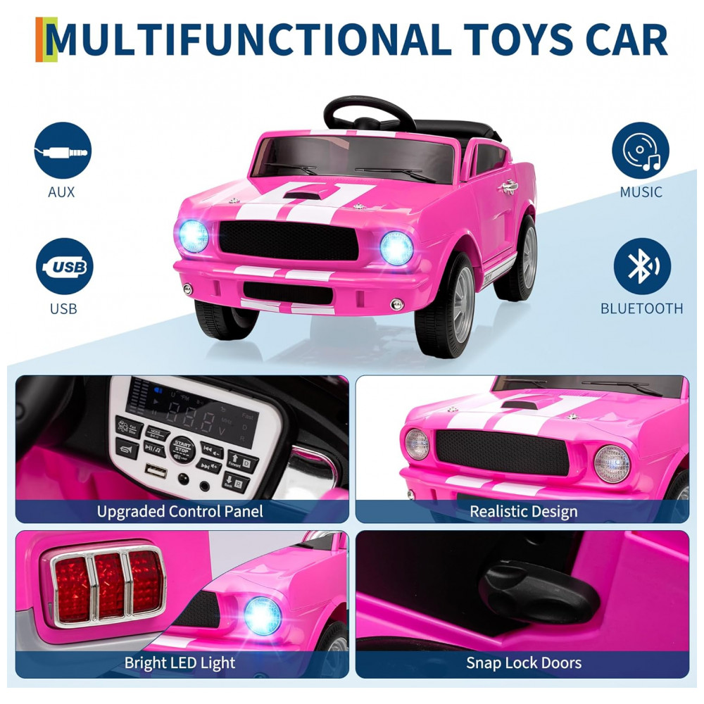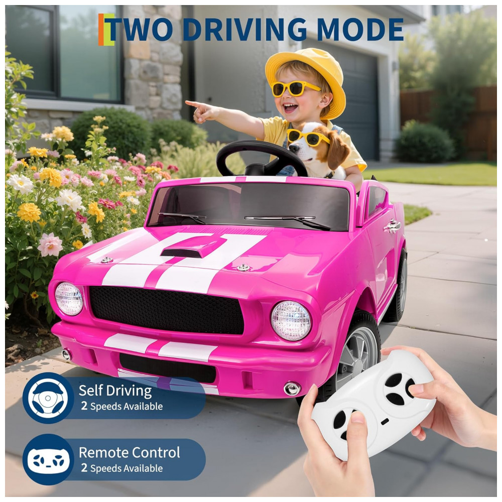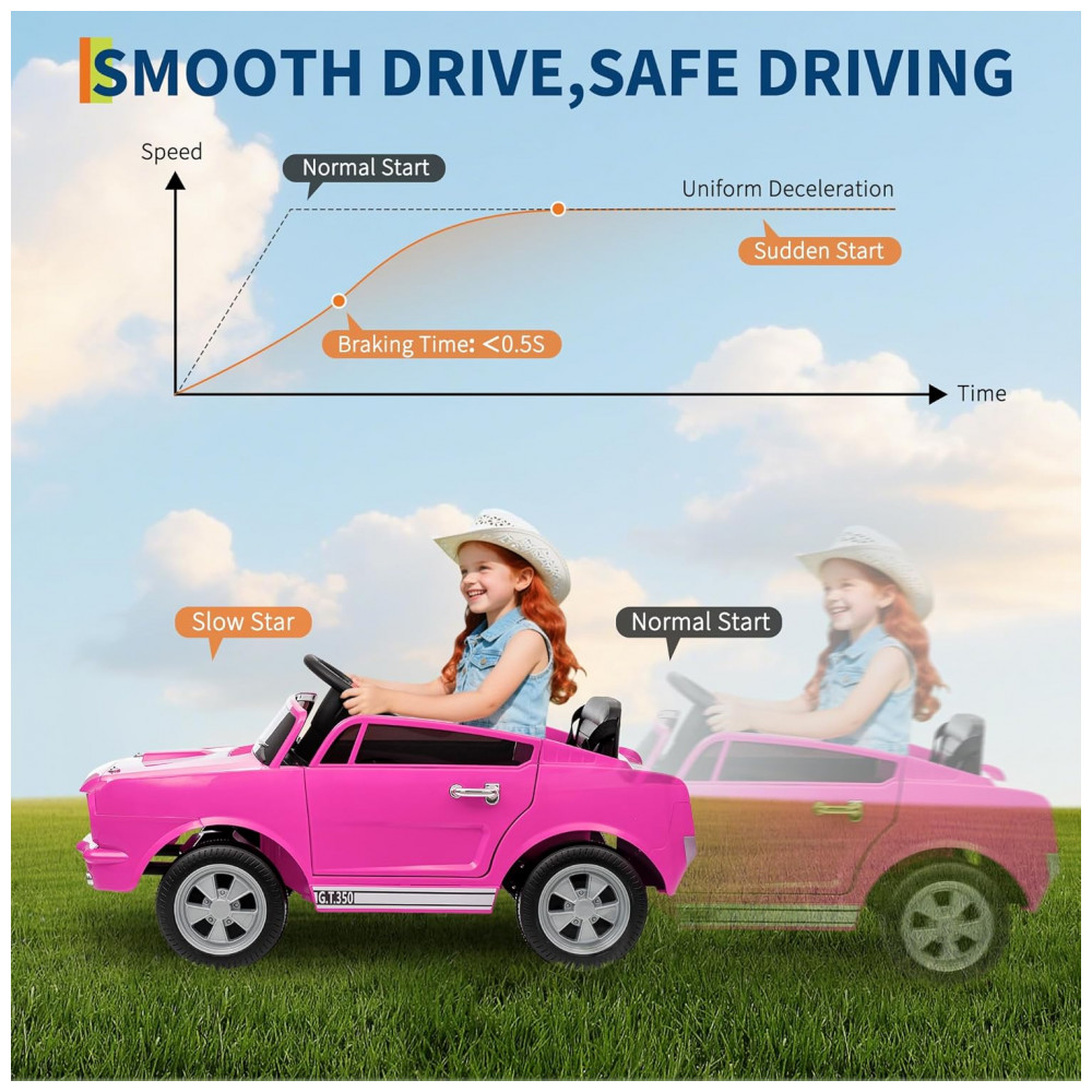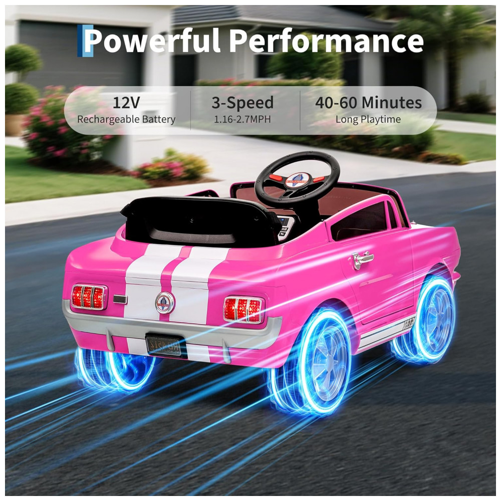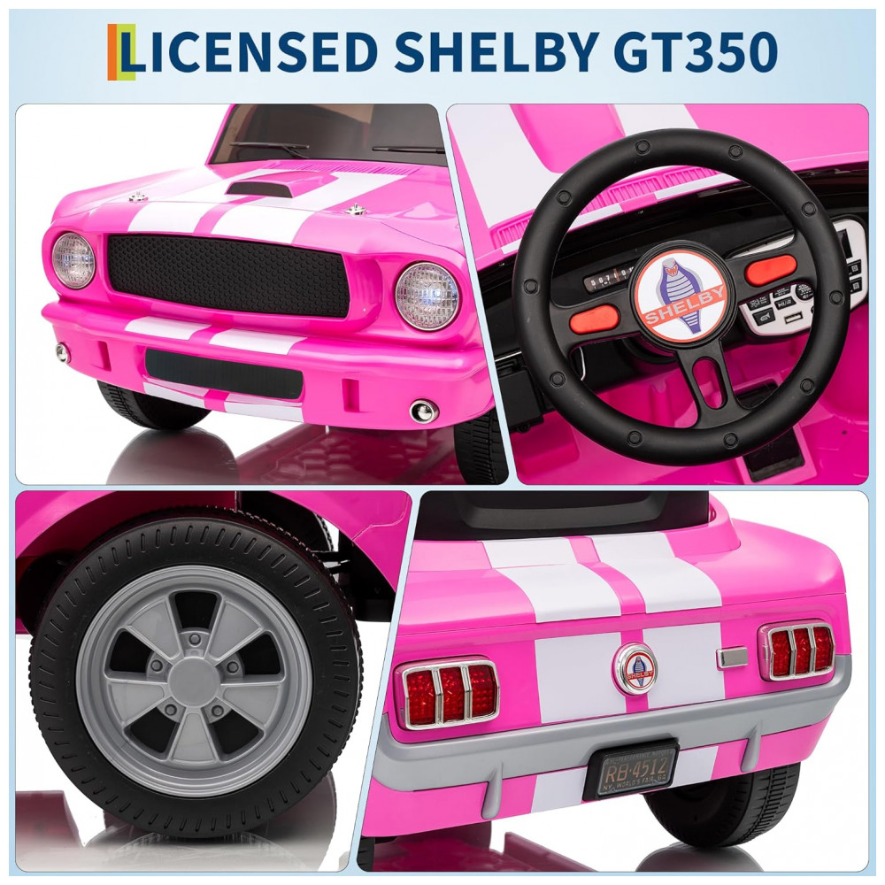 Carro Elétrico Infantil 12V INFANS Shelby Licenciado Controle Remoto Bluetooth Suspensão Cinto de Segurança 3 Velocidades Rosa