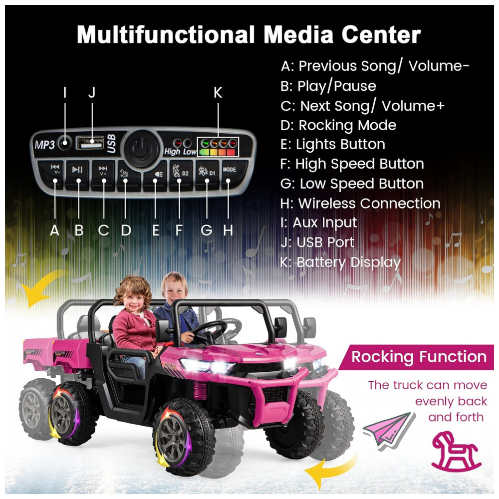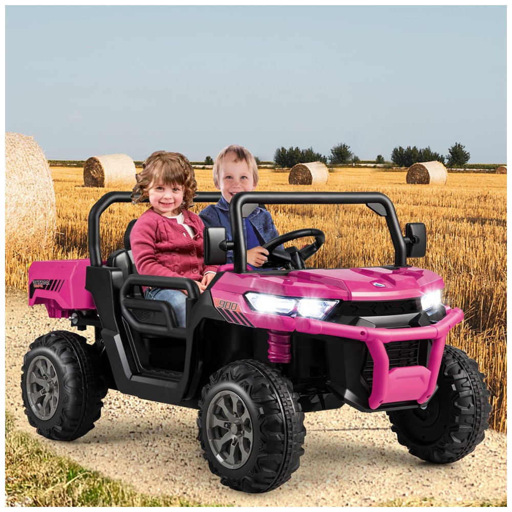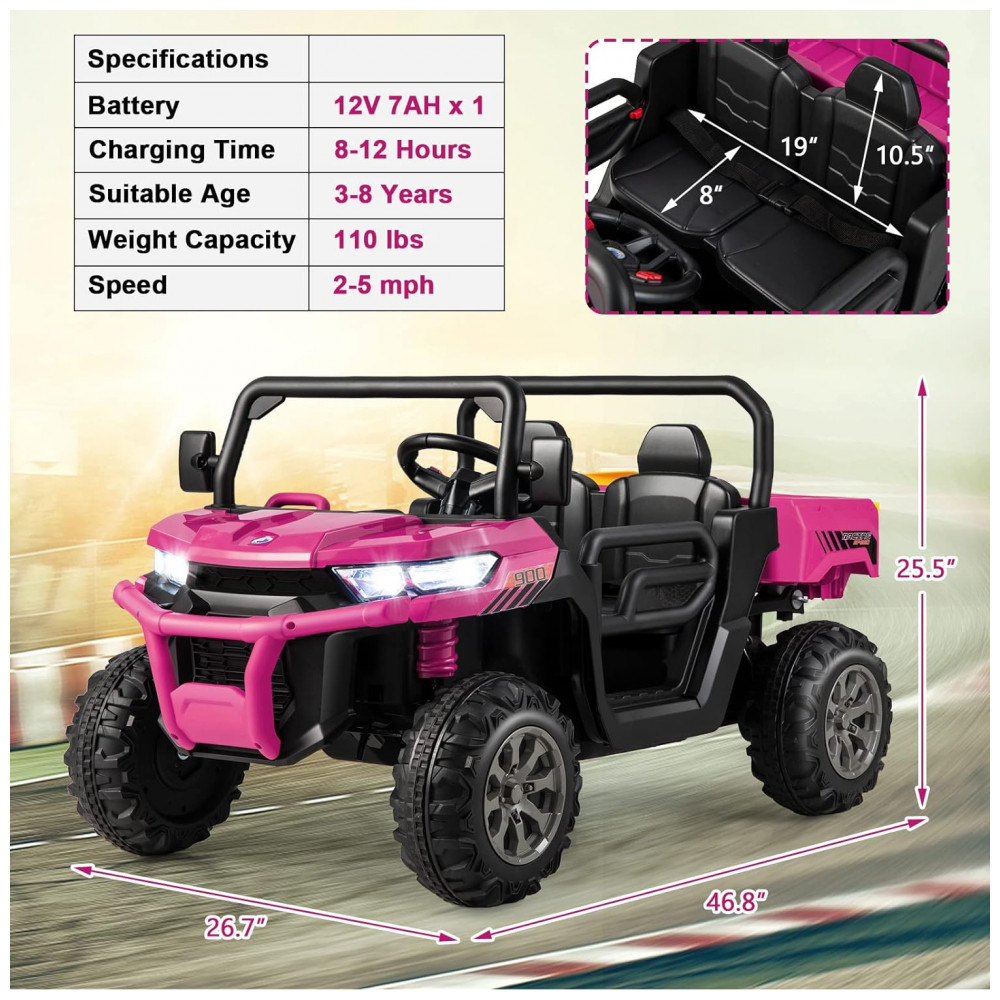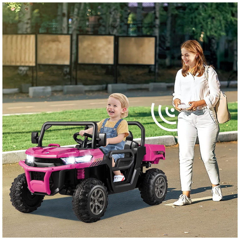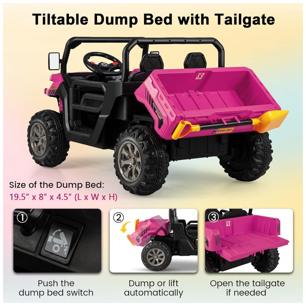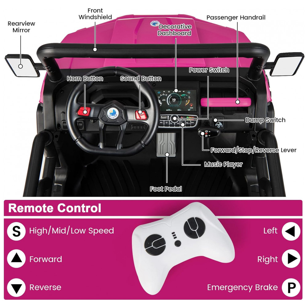 Carro Elétrico Infantil 2 Assentos com Caçamba Pá USB e Controle Remoto 12V Costzon Rosa