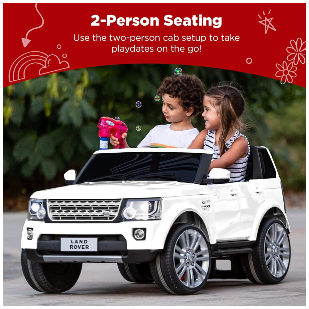 ASSENTO DE 2 PESSOAS O passeio Land Rover oficialmente licenciado tem assentos duplos que permitem ao seu filho navegar confortavelmente no veículo e levar um amigo ou irmão para o passeio