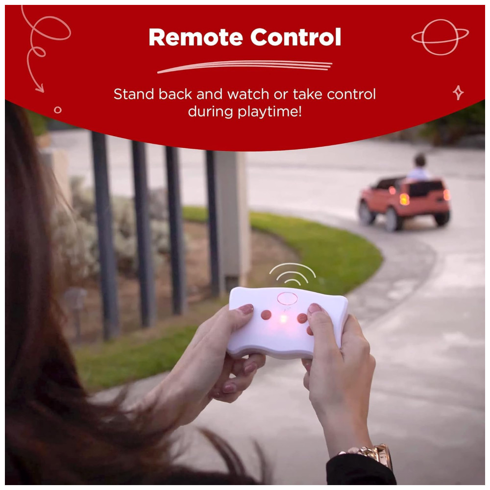 CONTROLE MANUAL E REMOTO Deixe seu filho dirigir manualmente ou use o controle remoto de 2,4 GHz para guiá lo quando necessário o controle remoto possui controles de avanço , reverso e seleção de velocidade.