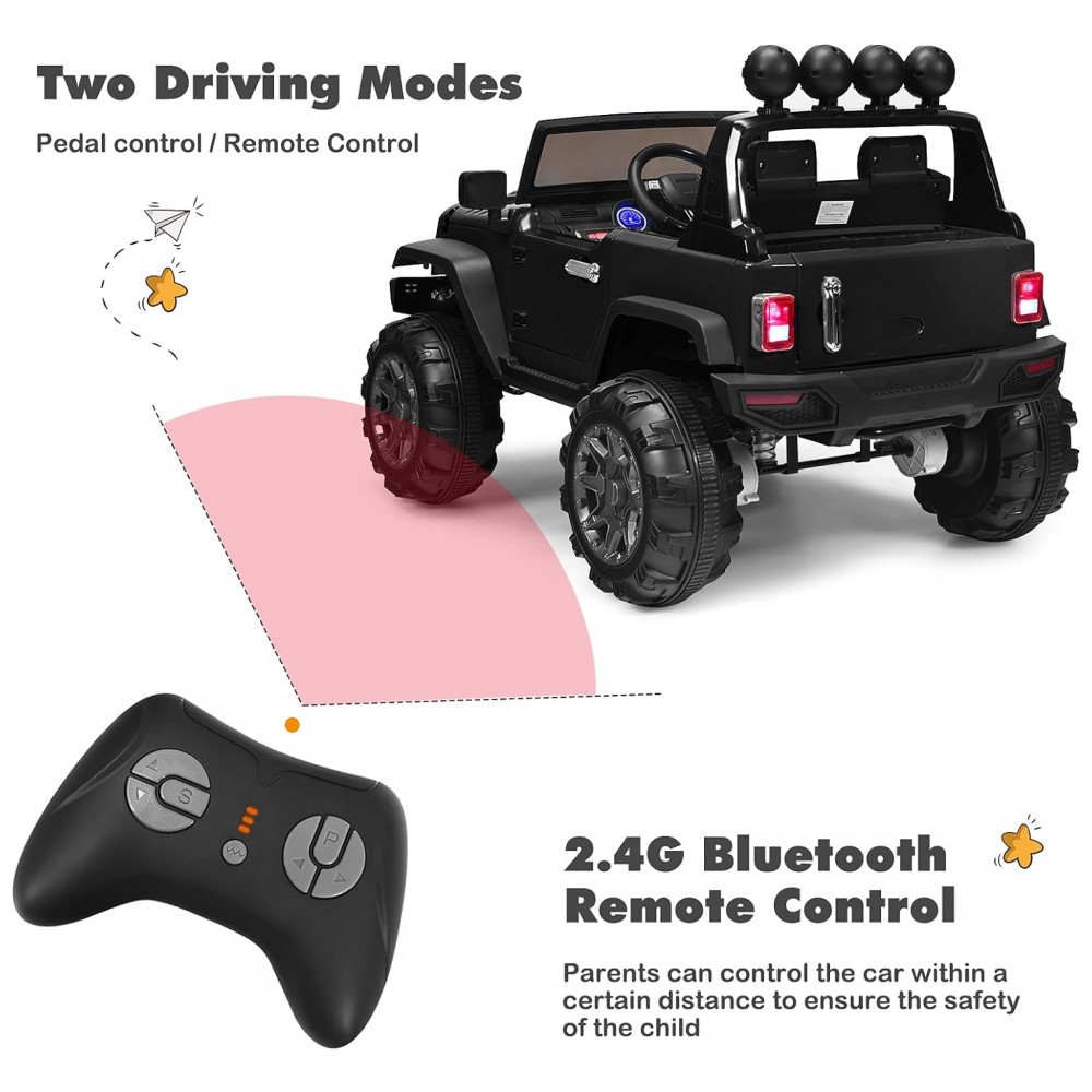 Carro Elétrico Infantil 2 Assentos com Suspensão Mola MP3 Luz LED 12V HONEY JOY Preto