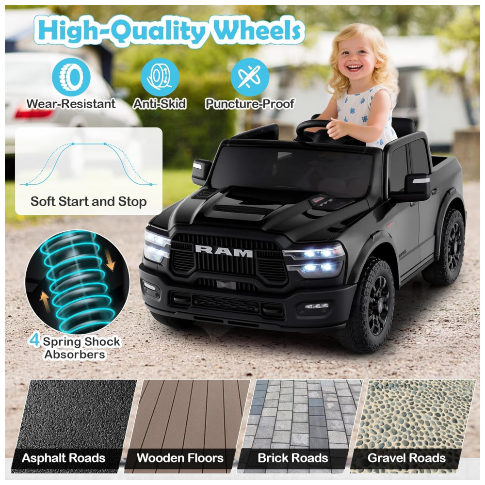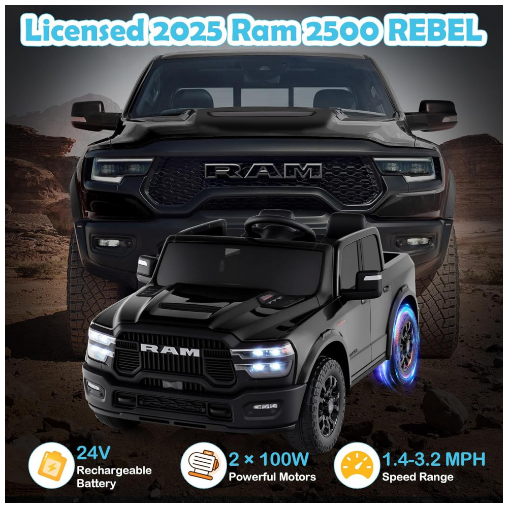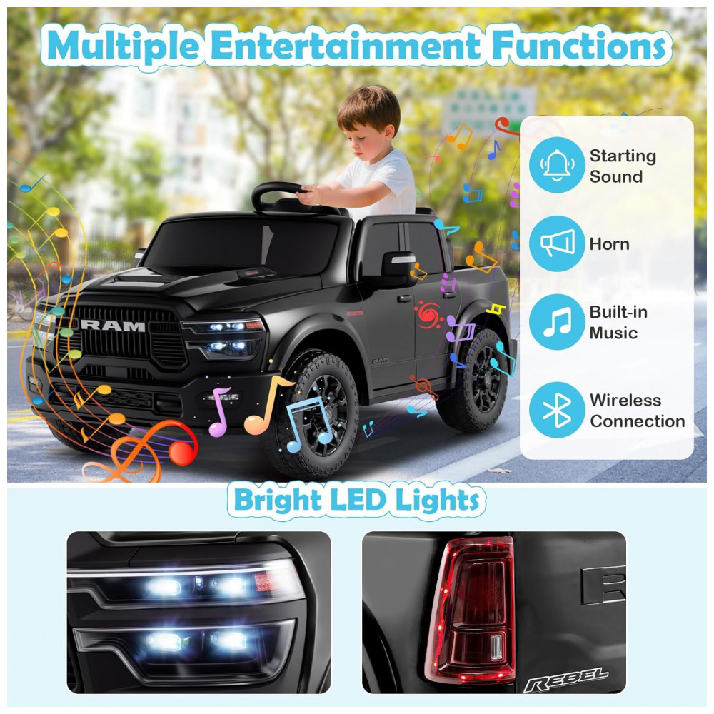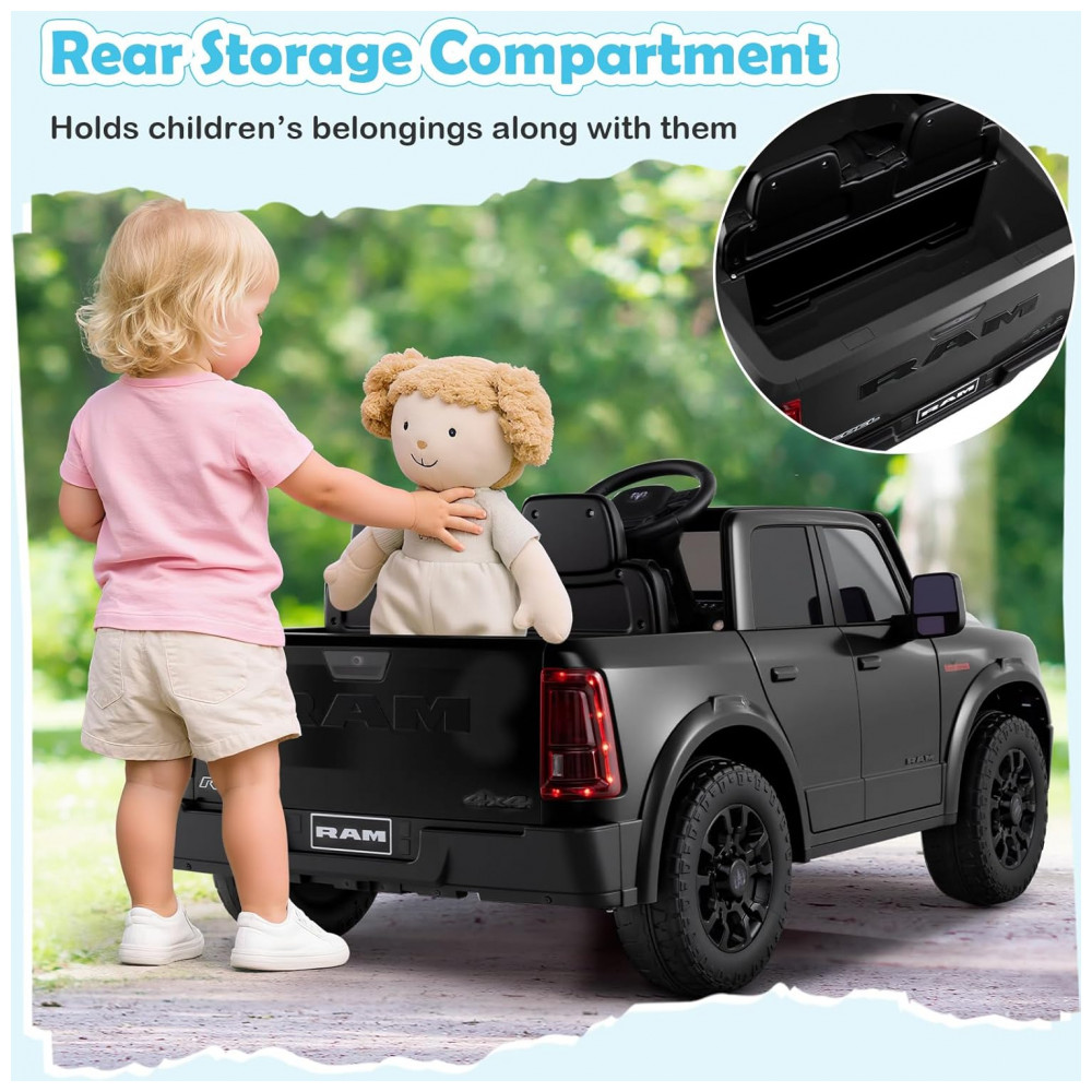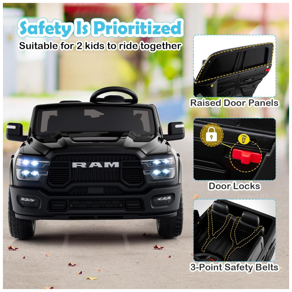 Carro Elétrico Infantil 2 Lugares 24V 2x100W Controle Remoto Suspensão 4 Rodas Costzon Ram 2500 Rebel Preto