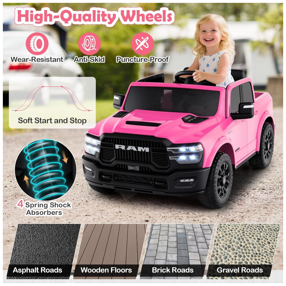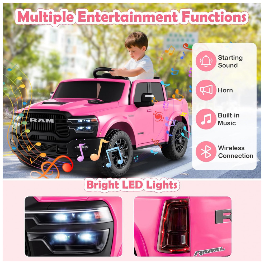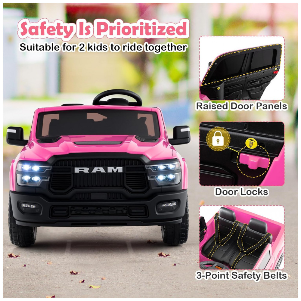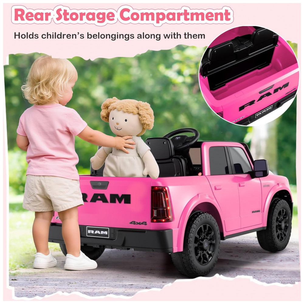 Carro Elétrico Infantil 2 Lugares 24V 2x100W Controle Remoto Suspensão 4 Rodas Costzon Ram 2500 Rebel Rosa