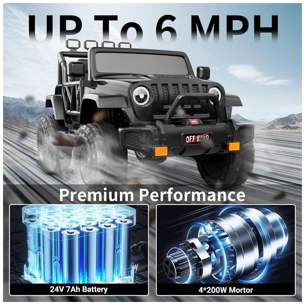 Carro Elétrico Infantil 2 Lugares 24V 4 Motores 200W Controle Remoto Suspensão CIYOMY Preto