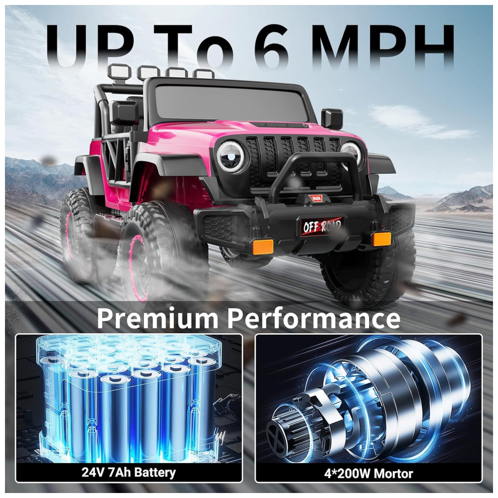 Carro Elétrico Infantil 2 Lugares 24V 4 Motores 200W Controle Remoto Suspensão CIYOMY Rosa