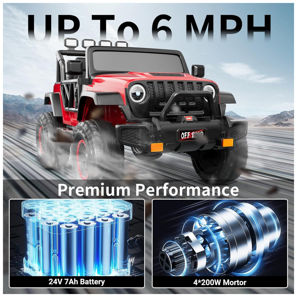 Carro Elétrico Infantil 2 Lugares 24V 4 Motores 200W Controle Remoto Suspensão CIYOMY Vermelho