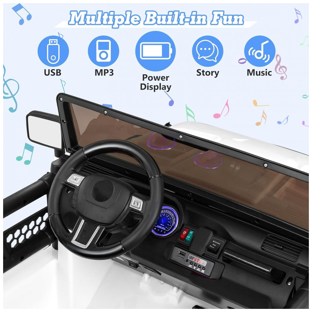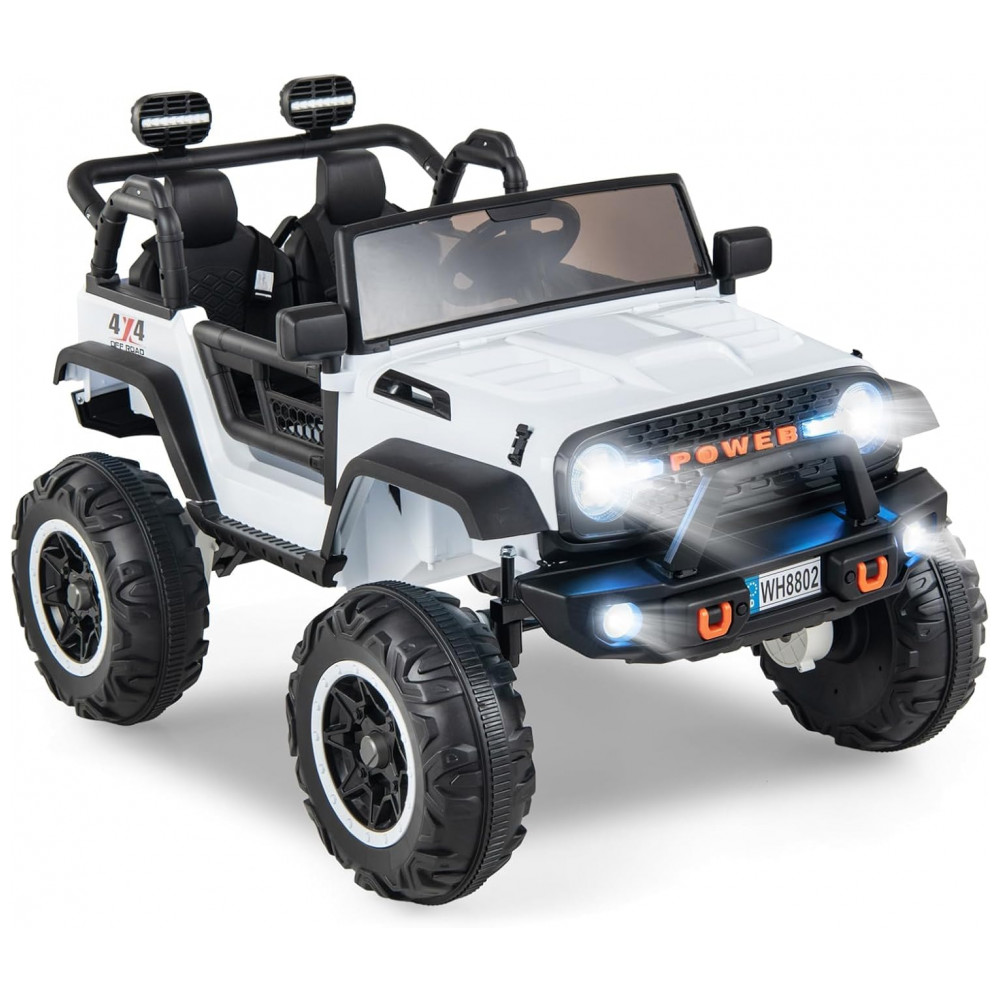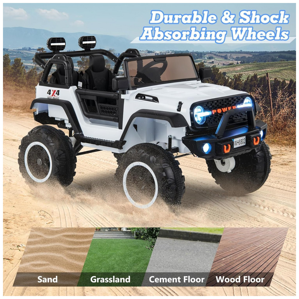 Carro Elétrico Infantil 2 Lugares OLAKIDS Branco 24V 2WD/4WD Jeep 4x550W Controle Remoto LED Suspensão Música 20″ Assento Duplo