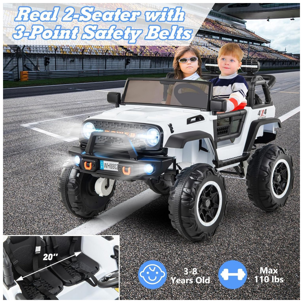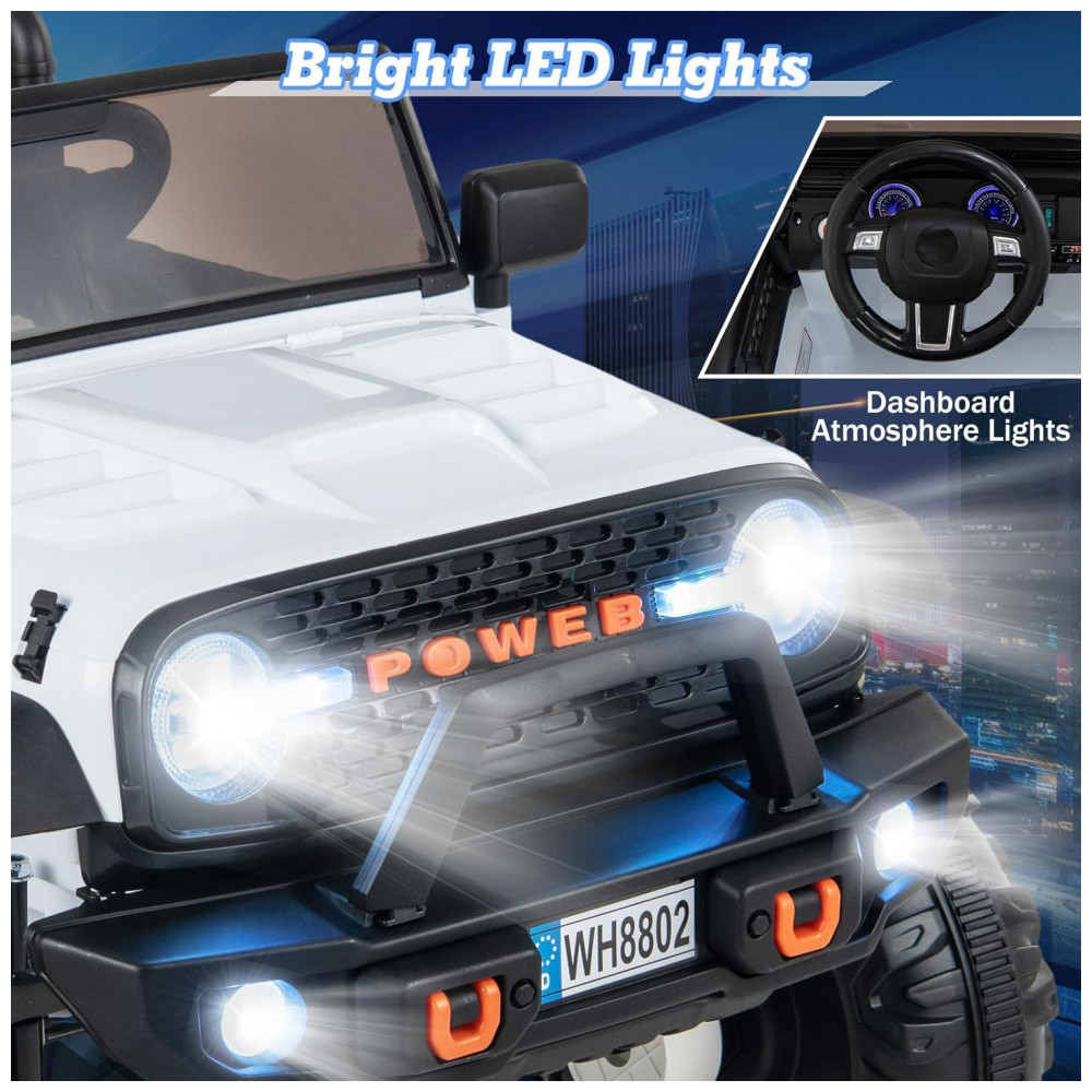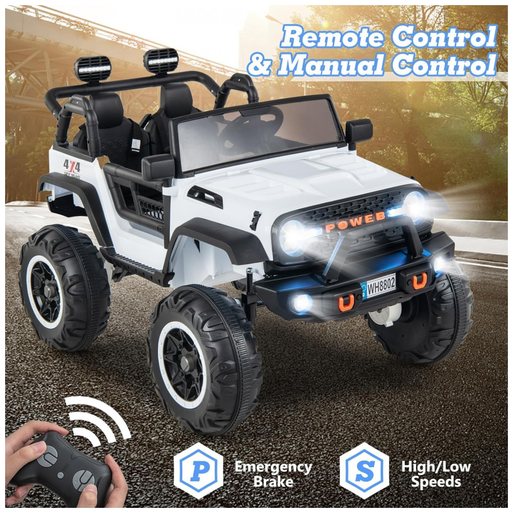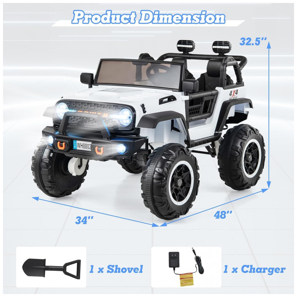 Carro Elétrico Infantil 2 Lugares OLAKIDS Branco 24V 2WD/4WD Jeep 4x550W Controle Remoto LED Suspensão Música 20″ Assento Duplo
