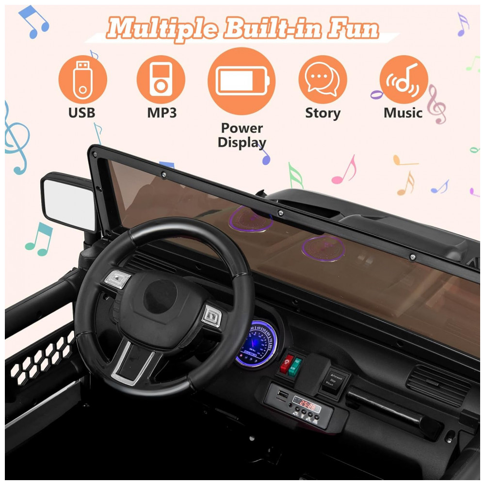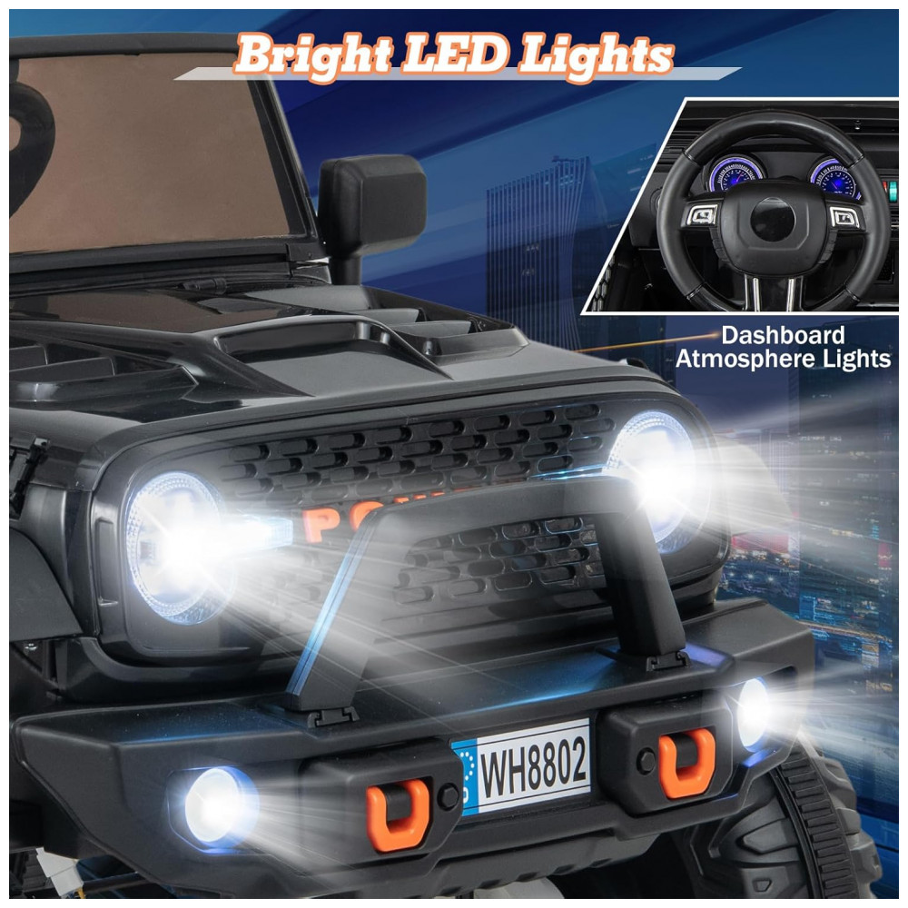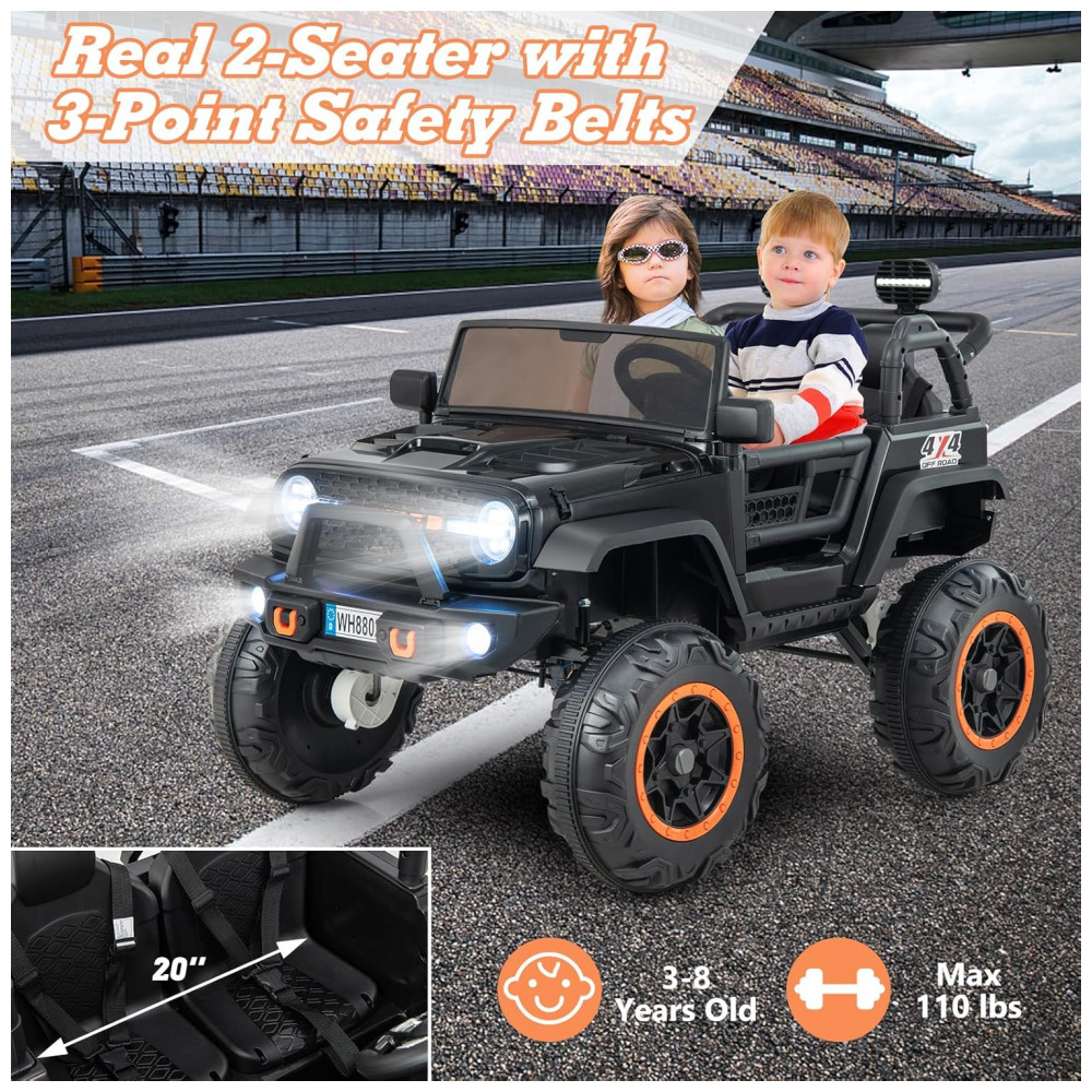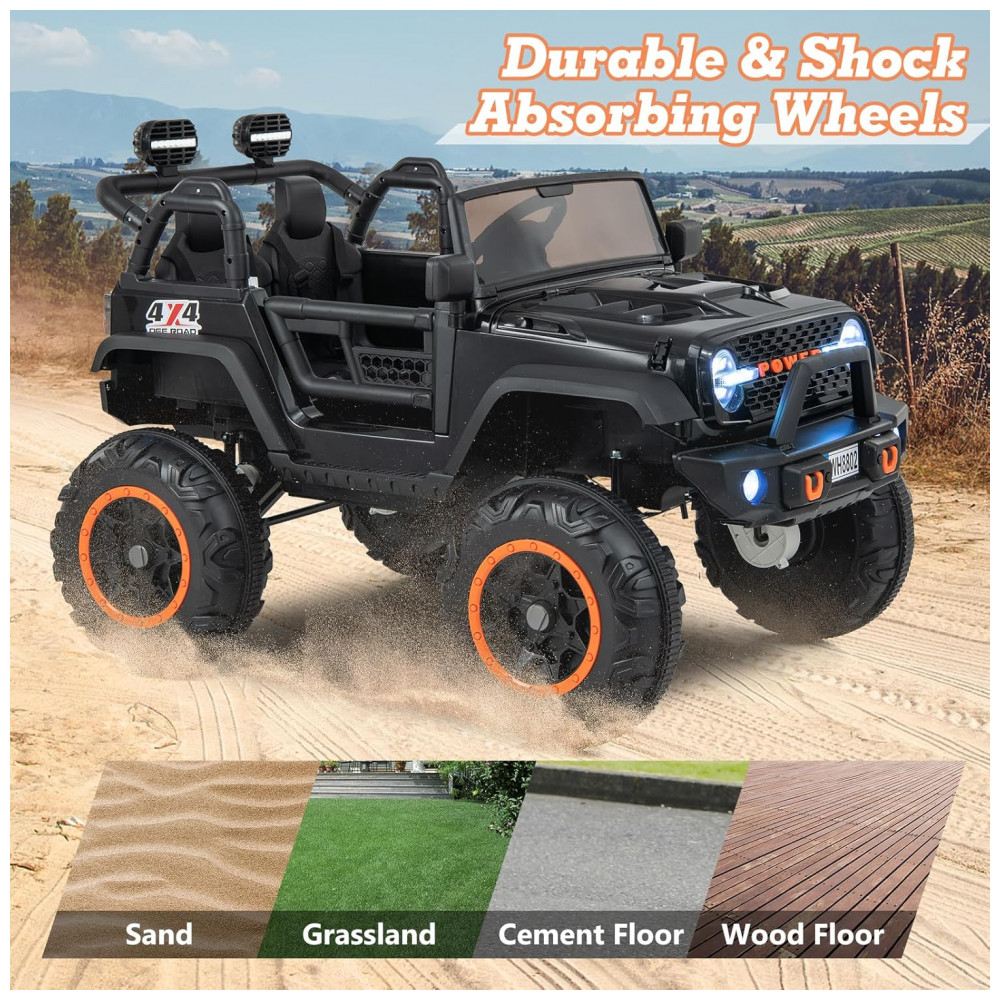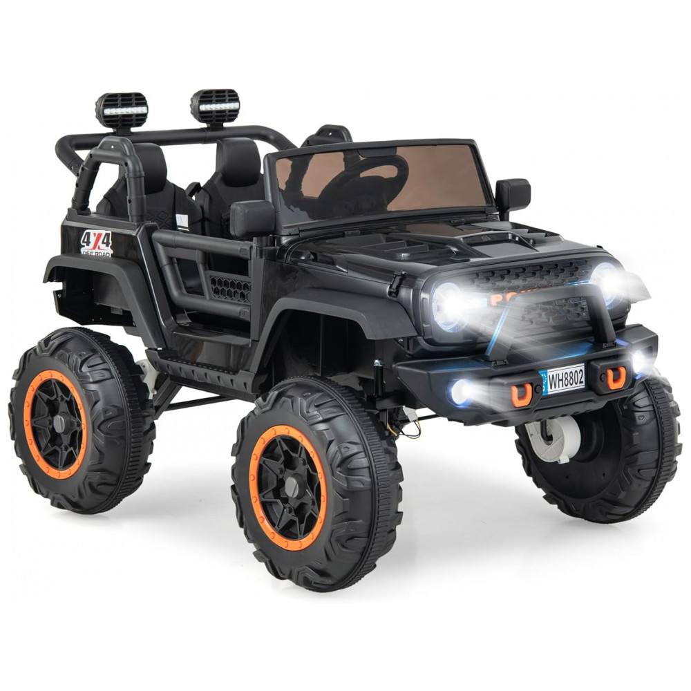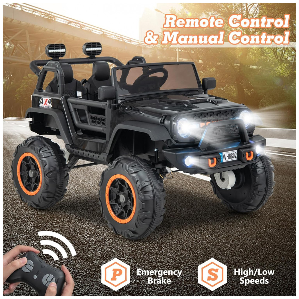 Carro Elétrico Infantil 2 Lugares OLAKIDS Preto 24V 2WD/4WD Jeep 4x550W Controle Remoto LED Suspensão Música 20″ Assento Duplo