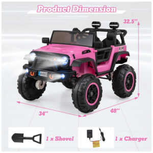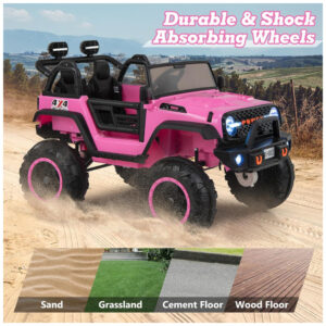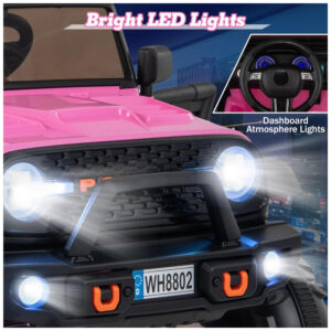 Carro Elétrico Infantil 2 Lugares OLAKIDS Rosa 24V 2WD/4WD Jeep 4x550W Controle Remoto LED Suspensão Música 20″ Assento Duplo
