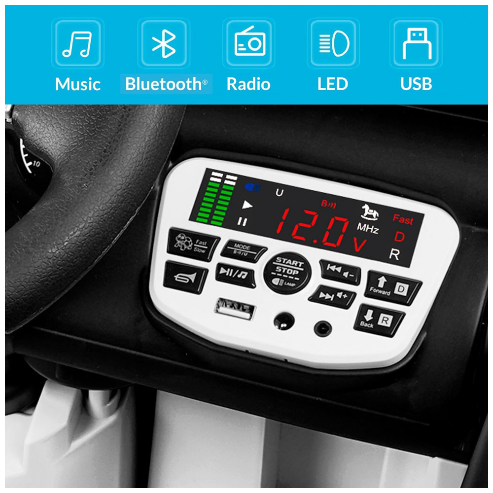 Carro Elétrico Infantil a Bateria 12V com 2 Assentos Luzes LED MP3 e Controle Remoto Kidzone Branco