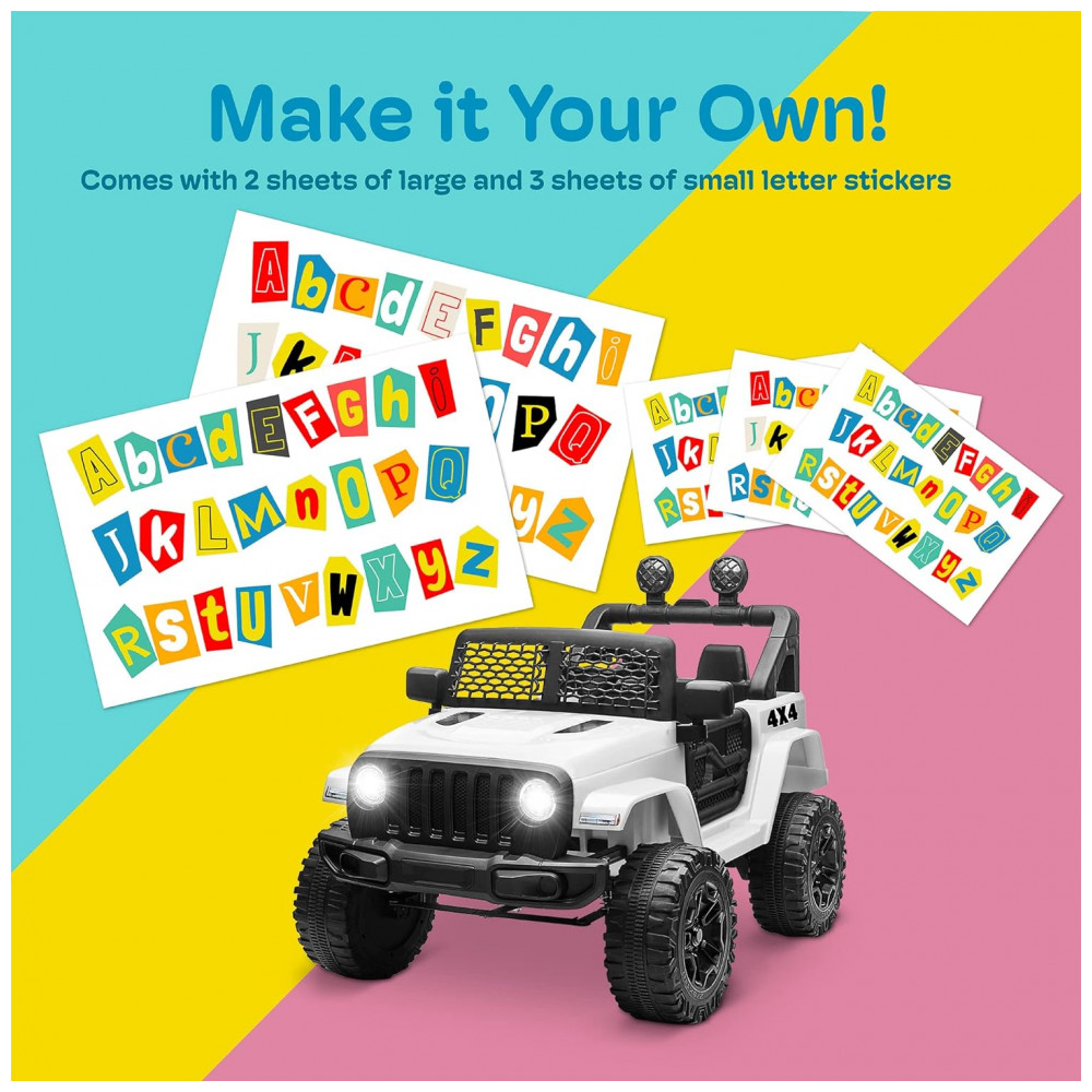 As crianças vão adorar personalizar este brinquedo com sua placa exclusiva. Inclui números DIY, alfabetos e adesivos com símbolos para que seu filho possa ser o orgulhoso proprietário do caminhão mais legal de todos os tempos.