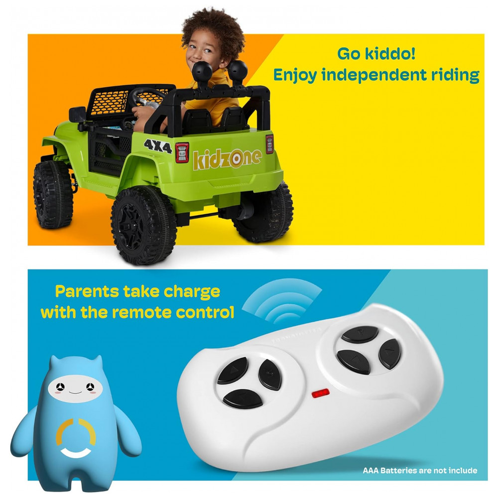 PROJETADO PARA SEGURANÇA Este carro elétrico está equipado com tecnologia de partida lenta para aceleração gradual para garantir uma condução estável e segura. Um cinto de segurança embutido mantém os pilotos s. Um controle remoto permite que um dos pais controle o veículo, se necessário.